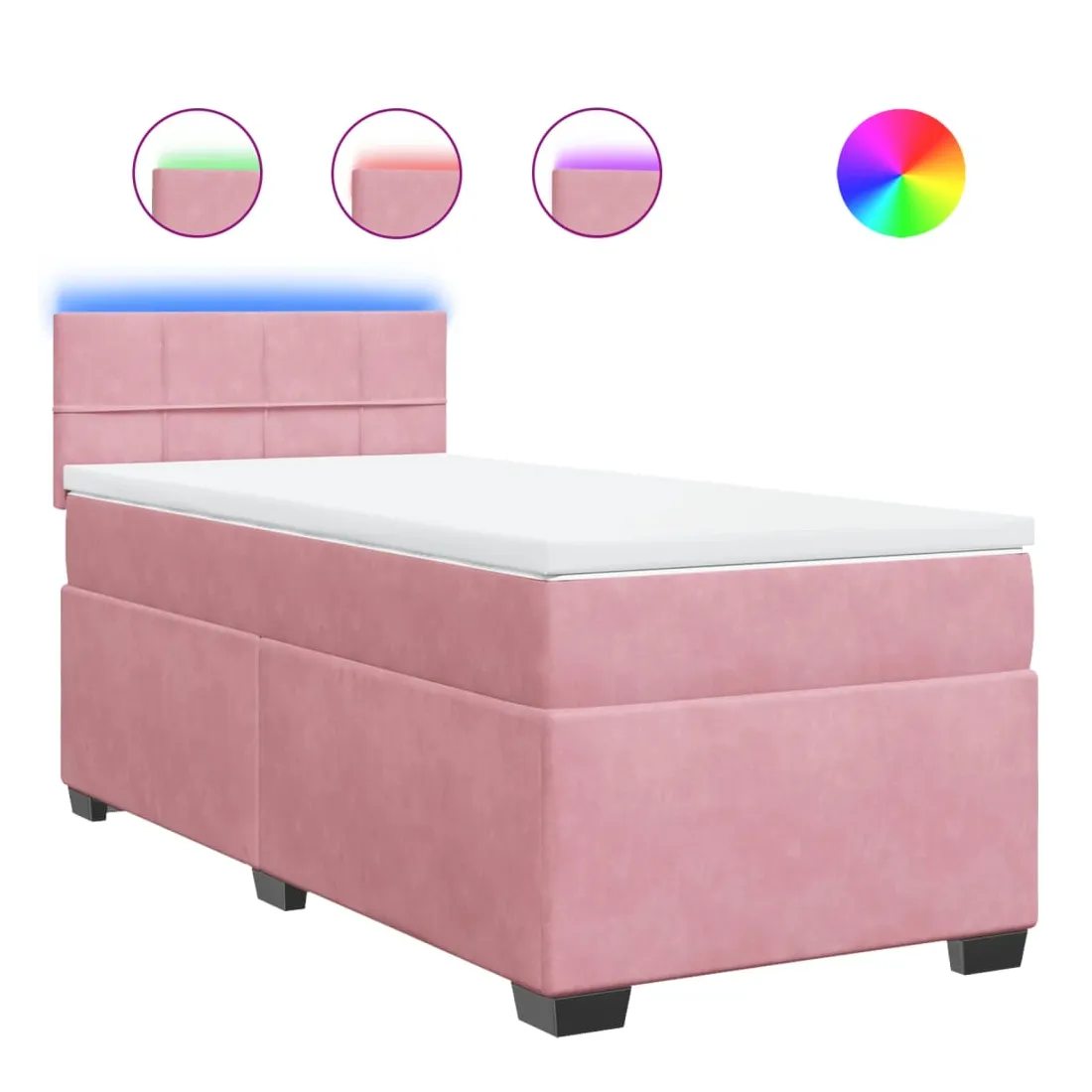 Utilisez ce lit à sommier pour profiter d'une nuit de sommeil réparatrice ! Il vous offre une relaxation maximale et un sommeil agréable. Matériau doux et confortable : le tissu en velours présente une surface douce et lisse qui offre une sensation agréable contre la peau, vous apportant chaleur et confort ultime.Matelas à ressorts ensachés : ce matelas à ressorts ensachés comporte des ressorts ensachés individuels qui fonctionnent indépendamment pour offrir un soutien personnalisé en réagissant uniquement à la pression exercée dans chaque zone. Cette conception empêche « l'enroulement » et réduit le transfert de mouvement par rapport aux matelas traditionnels à ressorts ouverts. Chaque ressort ensaché soutient le corps individuellement.Lumières LED pour une ambiance agréable : ce lit est équipé de lumières LED qui peuvent être facilement réglées pour créer un spectacle lumineux personnalisé. Vous pouvez personnaliser les modes, les couleurs et la luminosité pour améliorer l'ambiance de votre espace intérieur.Surmatelas confortable : ce surmatelas améliore le soutien et le confort grâce à sa surface douce et respirante, tout en prolongeant la durée de vie de votre matelas. Sa housse amovible permet un lavage facile, ce qui facilite l'entretien. Bon à savoir :Ce produit est doté d'un connecteur USB qui nécessite une source d'alimentation USB de 5V certifiée (non incluse).Pour des raisons d'hygiène, le matelas ne peut pas être retourné si l'emballage est retiré ou ouvert.Seule la partie avec un symbole de ciseaux peut être coupée et seule la partie avec l'USB continuera à fonctionner comme avant.
