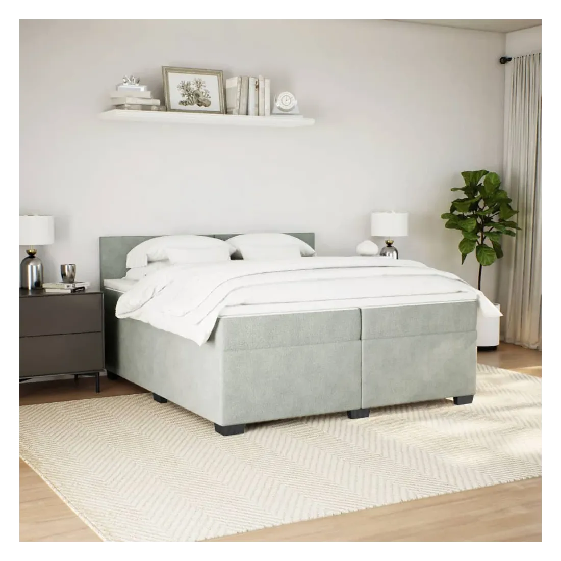 Sommier à lattes de lit et matelas Gris clair 200x200cm Velours