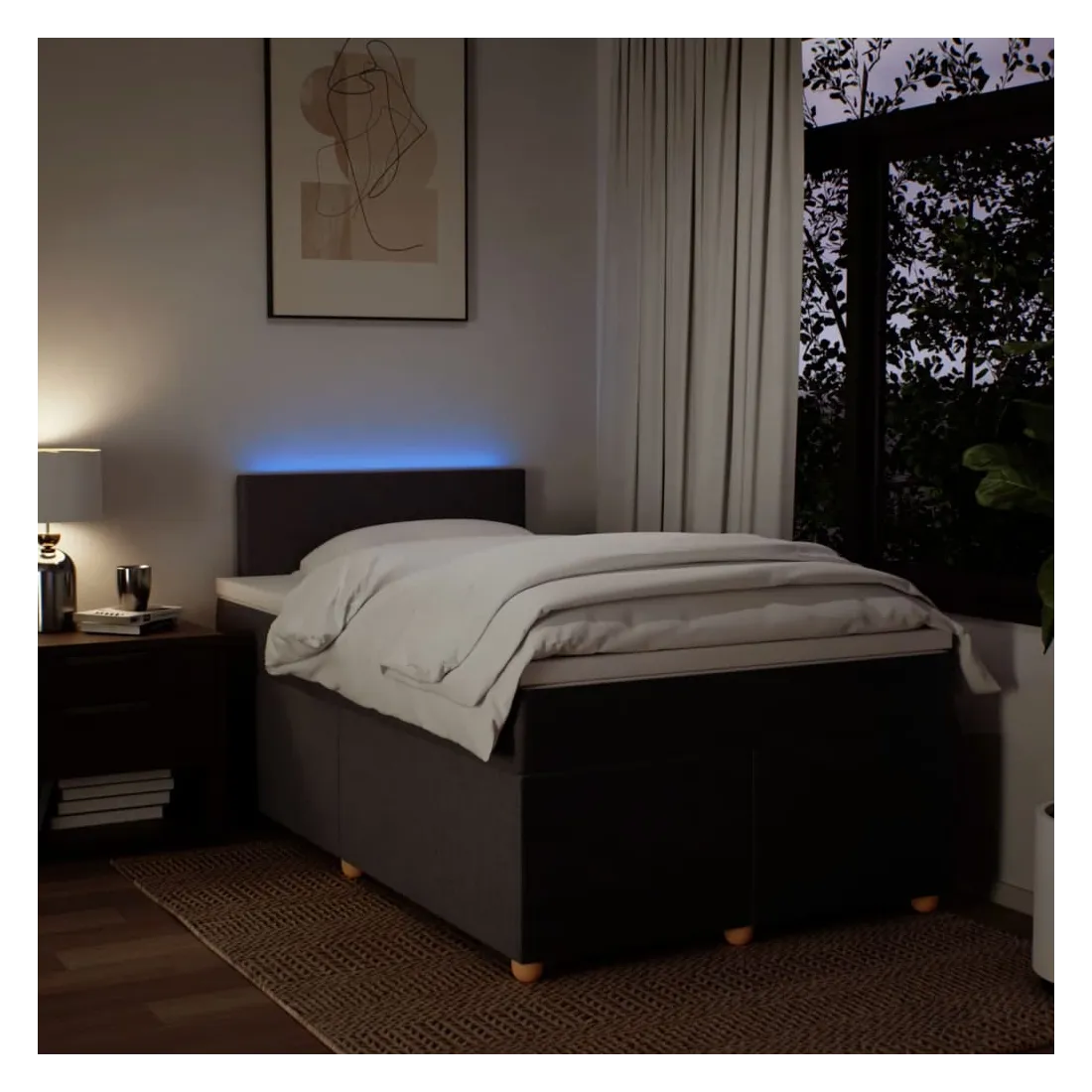 vidaXLUtilisez ce lit à sommier pour profiter d'une nuit de sommeil réparatrice ! Il vous offre une relaxation maximale et un sommeil agréable. Matériau doux et durable : le tissu en polyester allie douceur, respirabilité et durabilité, vous garantissant un confort et une convivialité ultimes.Matelas à ressorts ensachés : ce matelas à ressorts ensachés comporte des ressorts ensachés individuels qui fonctionnent indépendamment pour offrir un soutien personnalisé en réagissant uniquement à la pression exercée dans chaque zone. Cette conception empêche « l'enroulement » et réduit le transfert de mouvement par rapport aux matelas traditionnels à ressorts ouverts. Chaque ressort ensaché soutient le corps individuellement.Lumières LED pour une ambiance agréable : ce lit est équipé de lumières LED qui peuvent être facilement réglées pour créer un spectacle lumineux personnalisé. Vous pouvez personnaliser les modes, les couleurs et la luminosité pour améliorer l'ambiance de votre espace intérieur.Surmatelas confortable : ce surmatelas améliore le soutien et le confort grâce à sa surface douce et respirante, tout en prolongeant la durée de vie de votre matelas. Sa housse amovible permet un lavage facile, ce qui facilite l'entretien. Bon à savoir :Ce produit est doté d'un connecteur USB qui nécessite une source d'alimentation USB de 5V certifiée (non incluse).Pour des raisons d'hygiène, le matelas ne peut pas être retourné si l'emballage est retiré ou ouvert.Seule la partie avec un symbole de ciseaux peut être coupée et seule la partie avec l'USB continuera à fonctionner comme avant.