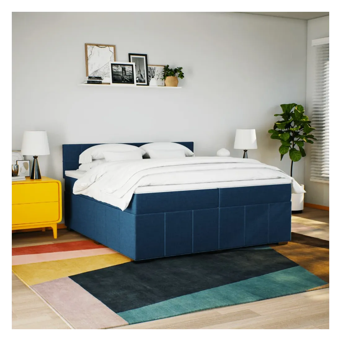 Sommier à lattes de lit avec matelas Bleu 200x200 cm Tissu