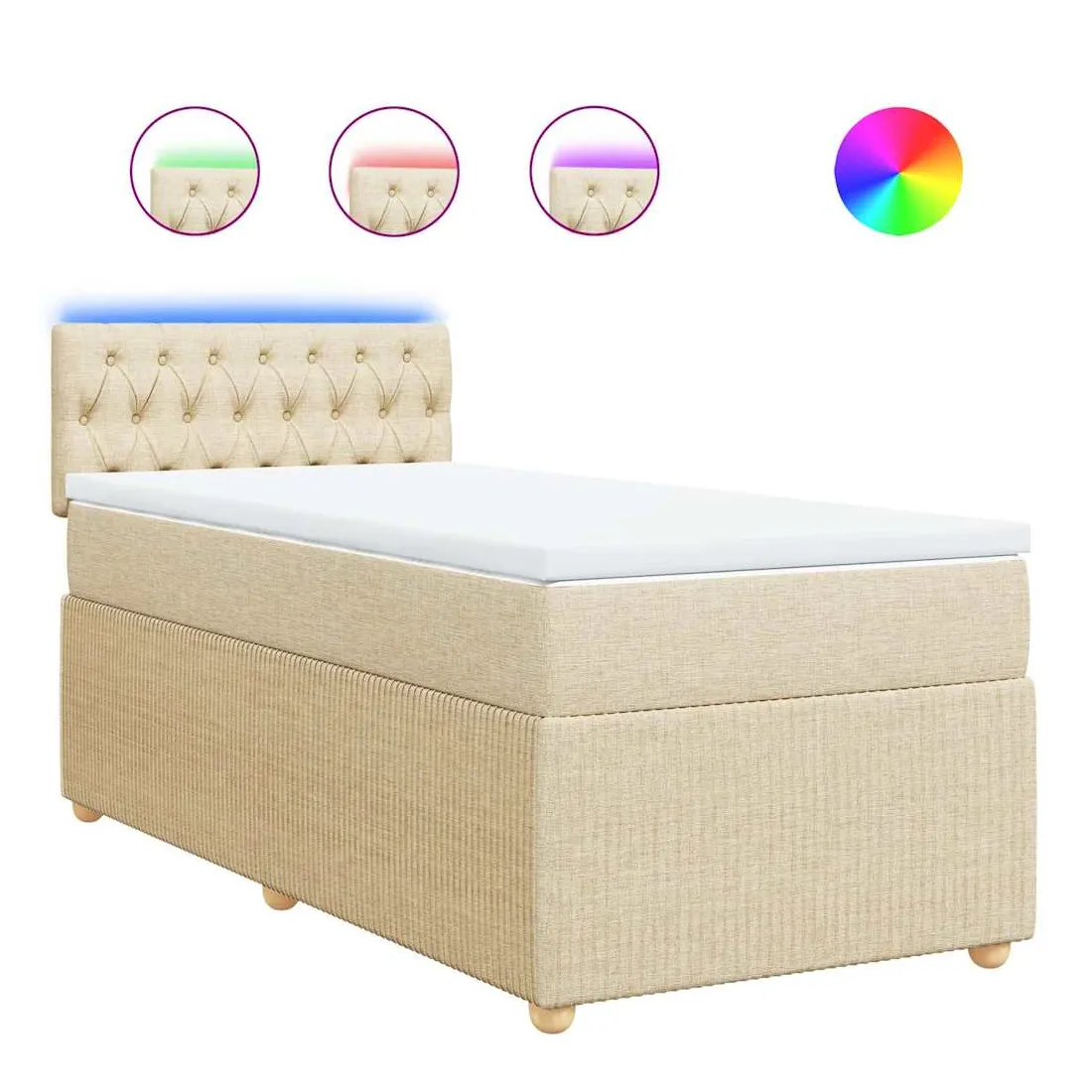 Utilisez ce lit à sommier pour profiter d'une nuit de sommeil réparatrice ! Il vous offre une relaxation maximale et un sommeil agréable. Matériau doux et durable : le tissu en polyester allie douceur, respirabilité et durabilité, vous garantissant un confort et une convivialité ultimes.Matelas à ressorts ensachés : ce matelas à ressorts ensachés comporte des ressorts ensachés individuels qui fonctionnent indépendamment pour offrir un soutien personnalisé en réagissant uniquement à la pression exercée dans chaque zone. Cette conception empêche « l'enroulement » et réduit le transfert de mouvement par rapport aux matelas traditionnels à ressorts ouverts. Chaque ressort ensaché soutient le corps individuellement.Lumières LED pour une ambiance agréable : ce lit est équipé de lumières LED qui peuvent être facilement réglées pour créer un spectacle lumineux personnalisé. Vous pouvez personnaliser les modes, les couleurs et la luminosité pour améliorer l'ambiance de votre espace intérieur.Surmatelas confortable : ce surmatelas améliore le soutien et le confort grâce à sa surface douce et respirante, tout en prolongeant la durée de vie de votre matelas. Sa housse amovible permet un lavage facile, ce qui facilite l'entretien. Bon à savoir :Ce produit est doté d'un connecteur USB qui nécessite une source d'alimentation USB de 5V certifiée (non incluse).Pour des raisons d'hygiène, le matelas ne peut pas être retourné si l'emballage est retiré ou ouvert.Seule la partie avec un symbole de ciseaux peut être coupée et seule la partie avec l'USB continuera à fonctionner comme avant.