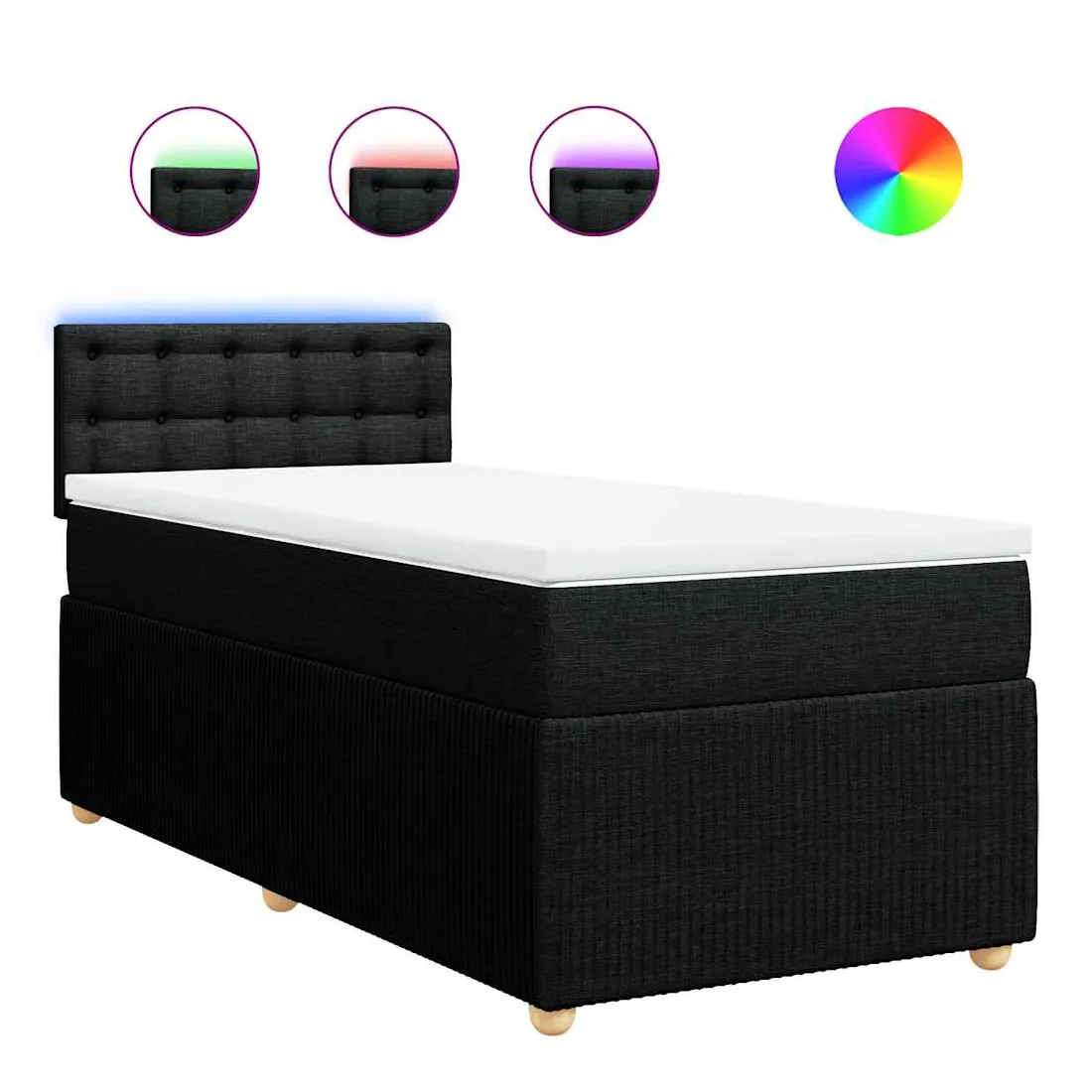 Utilisez ce lit à sommier pour profiter d'une nuit de sommeil réparatrice ! Il vous offre une relaxation maximale et un sommeil agréable. Matériau doux et durable : le tissu en polyester allie douceur, respirabilité et durabilité, vous garantissant un confort et une convivialité ultimes.Matelas à ressorts ensachés : ce matelas à ressorts ensachés comporte des ressorts ensachés individuels qui fonctionnent indépendamment pour offrir un soutien personnalisé en réagissant uniquement à la pression exercée dans chaque zone. Cette conception empêche « l'enroulement » et réduit le transfert de mouvement par rapport aux matelas traditionnels à ressorts ouverts. Chaque ressort ensaché soutient le corps individuellement.Lumières LED pour une ambiance agréable : ce lit est équipé de lumières LED qui peuvent être facilement réglées pour créer un spectacle lumineux personnalisé. Vous pouvez personnaliser les modes, les couleurs et la luminosité pour améliorer l'ambiance de votre espace intérieur.Surmatelas confortable : ce surmatelas améliore le soutien et le confort grâce à sa surface douce et respirante, tout en prolongeant la durée de vie de votre matelas. Sa housse amovible permet un lavage facile, ce qui facilite l'entretien. Bon à savoir :Ce produit est doté d'un connecteur USB qui nécessite une source d'alimentation USB de 5V certifiée (non incluse).Pour des raisons d'hygiène, le matelas ne peut pas être retourné si l'emballage est retiré ou ouvert.Seule la partie avec un symbole de ciseaux peut être coupée et seule la partie avec l'USB continuera à fonctionner comme avant.