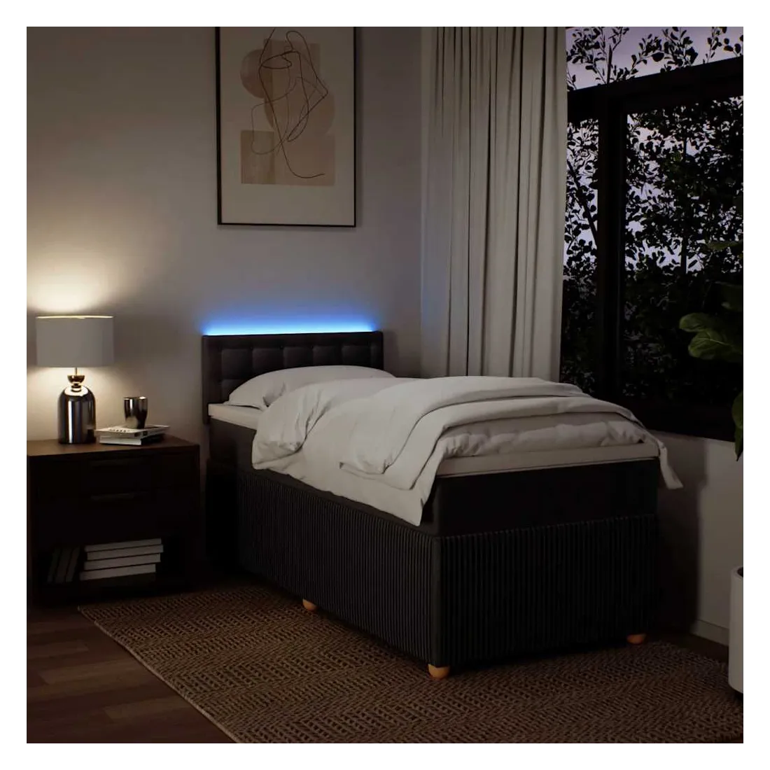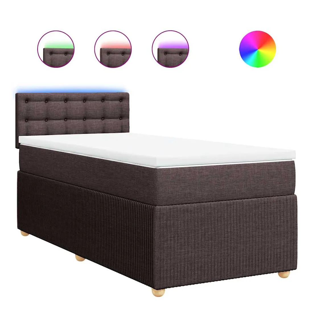 vidaXLUtilisez ce lit à sommier pour profiter d'une nuit de sommeil réparatrice ! Il vous offre une relaxation maximale et un sommeil agréable. Matériau doux et durable : le tissu en polyester allie douceur, respirabilité et durabilité, vous garantissant un confort et une convivialité ultimes.Matelas à ressorts ensachés : ce matelas à ressorts ensachés comporte des ressorts ensachés individuels qui fonctionnent indépendamment pour offrir un soutien personnalisé en réagissant uniquement à la pression exercée dans chaque zone. Cette conception empêche « l'enroulement » et réduit le transfert de mouvement par rapport aux matelas traditionnels à ressorts ouverts. Chaque ressort ensaché soutient le corps individuellement.Lumières LED pour une ambiance agréable : ce lit est équipé de lumières LED qui peuvent être facilement réglées pour créer un spectacle lumineux personnalisé. Vous pouvez personnaliser les modes, les couleurs et la luminosité pour améliorer l'ambiance de votre espace intérieur.Surmatelas confortable : ce surmatelas améliore le soutien et le confort grâce à sa surface douce et respirante, tout en prolongeant la durée de vie de votre matelas. Sa housse amovible permet un lavage facile, ce qui facilite l'entretien. Bon à savoir :Ce produit est doté d'un connecteur USB qui nécessite une source d'alimentation USB de 5V certifiée (non incluse).Pour des raisons d'hygiène, le matelas ne peut pas être retourné si l'emballage est retiré ou ouvert.Seule la partie avec un symbole de ciseaux peut être coupée et seule la partie avec l'USB continuera à fonctionner comme avant.