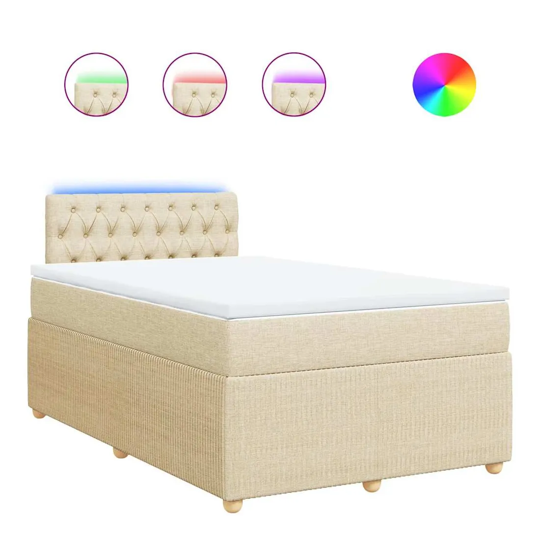 Utilisez ce lit à sommier pour profiter d'une nuit de sommeil réparatrice ! Il vous offre une relaxation maximale et un sommeil agréable. Matériau doux et durable : le tissu en polyester allie douceur, respirabilité et durabilité, vous garantissant un confort et une convivialité ultimes.Matelas à ressorts ensachés : ce matelas à ressorts ensachés comporte des ressorts ensachés individuels qui fonctionnent indépendamment pour offrir un soutien personnalisé en réagissant uniquement à la pression exercée dans chaque zone. Cette conception empêche « l'enroulement » et réduit le transfert de mouvement par rapport aux matelas traditionnels à ressorts ouverts. Chaque ressort ensaché soutient le corps individuellement.Lumières LED pour une ambiance agréable : ce lit est équipé de lumières LED qui peuvent être facilement réglées pour créer un spectacle lumineux personnalisé. Vous pouvez personnaliser les modes, les couleurs et la luminosité pour améliorer l'ambiance de votre espace intérieur.Surmatelas confortable : ce surmatelas améliore le soutien et le confort grâce à sa surface douce et respirante, tout en prolongeant la durée de vie de votre matelas. Sa housse amovible permet un lavage facile, ce qui facilite l'entretien. Bon à savoir :Ce produit est doté d'un connecteur USB qui nécessite une source d'alimentation USB de 5V certifiée (non incluse).Pour des raisons d'hygiène, le matelas ne peut pas être retourné si l'emballage est retiré ou ouvert.Seule la partie avec un symbole de ciseaux peut être coupée et seule la partie avec l'USB continuera à fonctionner comme avant.