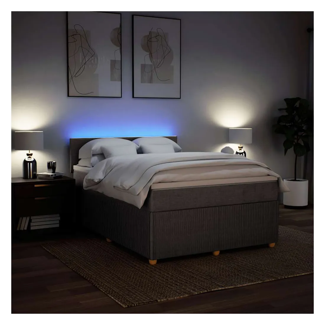 Utilisez ce lit à sommier pour profiter d'une nuit de sommeil réparatrice ! Il vous offre une relaxation maximale et un sommeil agréable. Matériau doux et durable : le tissu en polyester allie douceur, respirabilité et durabilité, vous garantissant un confort et une convivialité ultimes.Matelas à ressorts ensachés : ce matelas à ressorts ensachés comporte des ressorts ensachés individuels qui fonctionnent indépendamment pour offrir un soutien personnalisé en réagissant uniquement à la pression exercée dans chaque zone. Cette conception empêche « l'enroulement » et réduit le transfert de mouvement par rapport aux matelas traditionnels à ressorts ouverts. Chaque ressort ensaché soutient le corps individuellement.Lumières LED pour une ambiance agréable : ce lit est équipé de lumières LED qui peuvent être facilement réglées pour créer un spectacle lumineux personnalisé. Vous pouvez personnaliser les modes, les couleurs et la luminosité pour améliorer l'ambiance de votre espace intérieur.Surmatelas confortable : ce surmatelas améliore le soutien et le confort grâce à sa surface douce et respirante, tout en prolongeant la durée de vie de votre matelas. Sa housse amovible permet un lavage facile, ce qui facilite l'entretien. Bon à savoir :Ce produit est doté d'un connecteur USB qui nécessite une source d'alimentation USB de 5V certifiée (non incluse).Pour des raisons d'hygiène, le matelas ne peut pas être retourné si l'emballage est retiré ou ouvert.Seule la partie avec un symbole de ciseaux peut être coupée et seule la partie avec l'USB continuera à fonctionner comme avant.