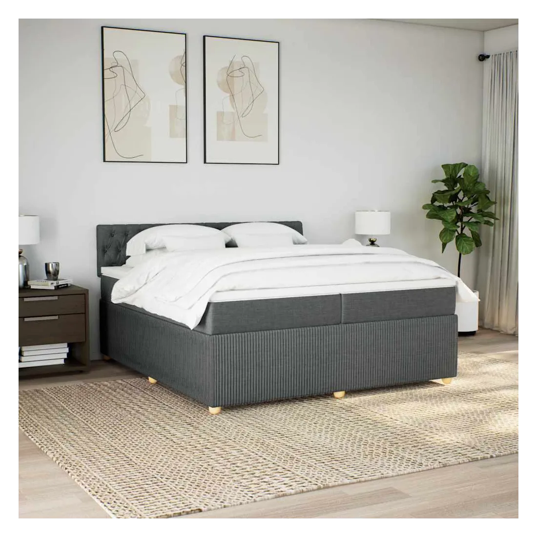 Sommier à lattes de lit avec matelas Gris foncé 200x200cm Tissu