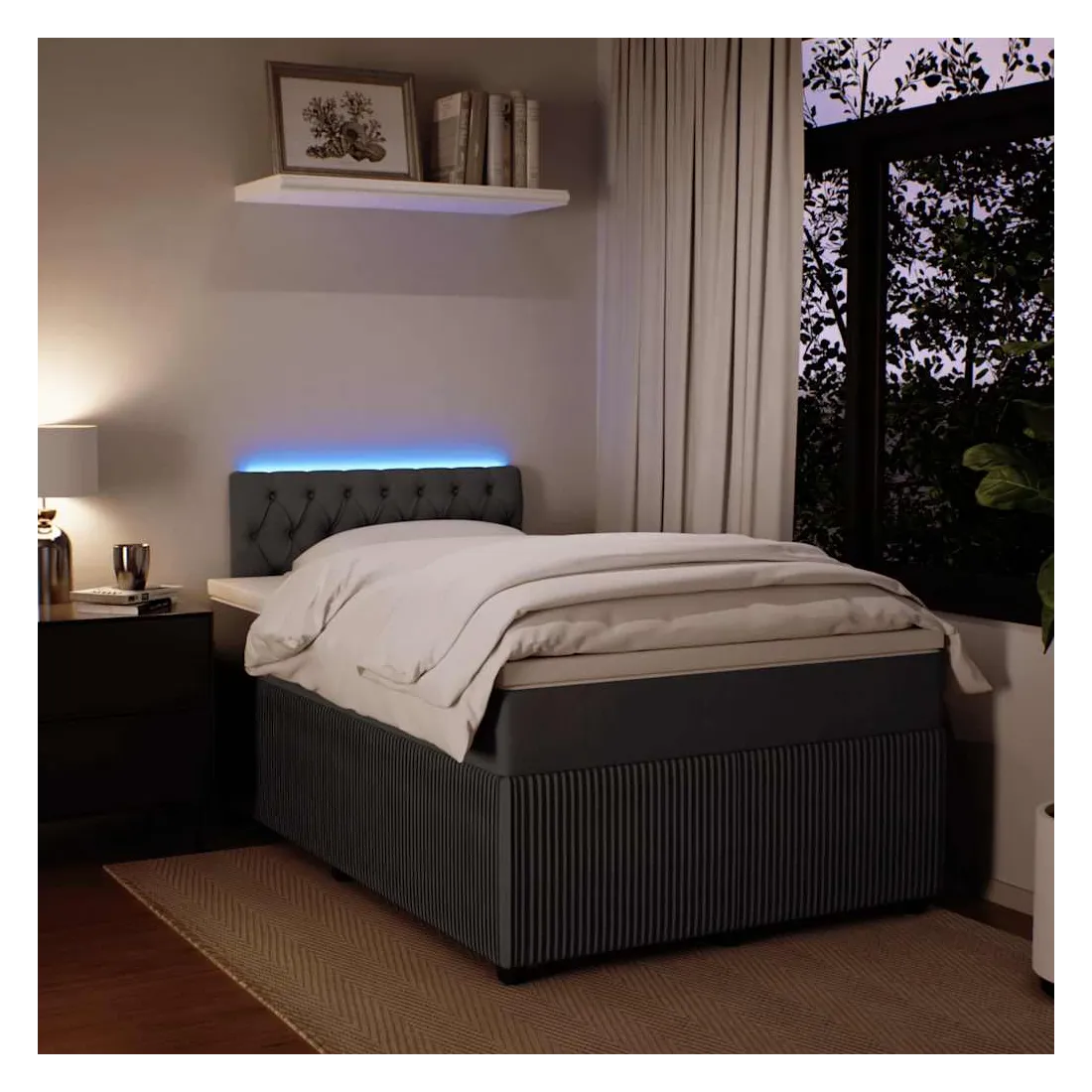 vidaXLUtilisez ce lit à sommier pour profiter d'une nuit de sommeil réparatrice ! Il vous offre une relaxation maximale et un sommeil agréable. Matériau doux et confortable : le tissu en velours présente une surface douce et lisse qui offre une sensation agréable contre la peau, vous apportant chaleur et confort ultime.Matelas à ressorts ensachés : ce matelas à ressorts ensachés comporte des ressorts ensachés individuels qui fonctionnent indépendamment pour offrir un soutien personnalisé en réagissant uniquement à la pression exercée dans chaque zone. Cette conception empêche « l'enroulement » et réduit le transfert de mouvement par rapport aux matelas traditionnels à ressorts ouverts. Chaque ressort ensaché soutient le corps individuellement.Lumières LED pour une ambiance agréable : ce lit est équipé de lumières LED qui peuvent être facilement réglées pour créer un spectacle lumineux personnalisé. Vous pouvez personnaliser les modes, les couleurs et la luminosité pour améliorer l'ambiance de votre espace intérieur.Surmatelas confortable : ce surmatelas améliore le soutien et le confort grâce à sa surface douce et respirante, tout en prolongeant la durée de vie de votre matelas. Sa housse amovible permet un lavage facile, ce qui facilite l'entretien. Bon à savoir :Ce produit est doté d'un connecteur USB qui nécessite une source d'alimentation USB de 5V certifiée (non incluse).Pour des raisons d'hygiène, le matelas ne peut pas être retourné si l'emballage est retiré ou ouvert.Seule la partie avec un symbole de ciseaux peut être coupée et seule la partie avec l'USB continuera à fonctionner comme avant.