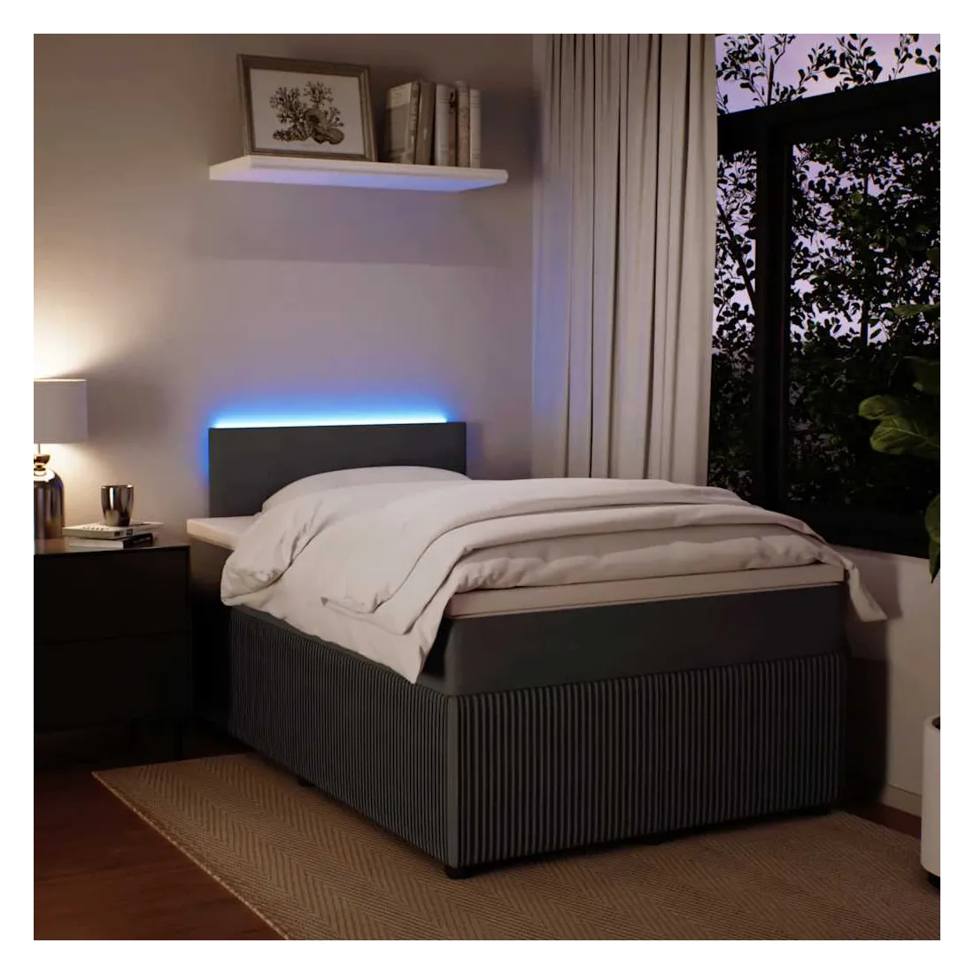 vidaXLUtilisez ce lit à sommier pour profiter d'une nuit de sommeil réparatrice ! Il vous offre une relaxation maximale et un sommeil agréable. Matériau doux et confortable : le tissu en velours présente une surface douce et lisse qui offre une sensation agréable contre la peau, vous apportant chaleur et confort ultime.Matelas à ressorts ensachés : ce matelas à ressorts ensachés comporte des ressorts ensachés individuels qui fonctionnent indépendamment pour offrir un soutien personnalisé en réagissant uniquement à la pression exercée dans chaque zone. Cette conception empêche « l'enroulement » et réduit le transfert de mouvement par rapport aux matelas traditionnels à ressorts ouverts. Chaque ressort ensaché soutient le corps individuellement.Lumières LED pour une ambiance agréable : ce lit est équipé de lumières LED qui peuvent être facilement réglées pour créer un spectacle lumineux personnalisé. Vous pouvez personnaliser les modes, les couleurs et la luminosité pour améliorer l'ambiance de votre espace intérieur.Surmatelas confortable : ce surmatelas améliore le soutien et le confort grâce à sa surface douce et respirante, tout en prolongeant la durée de vie de votre matelas. Sa housse amovible permet un lavage facile, ce qui facilite l'entretien. Bon à savoir :Ce produit est doté d'un connecteur USB qui nécessite une source d'alimentation USB de 5V certifiée (non incluse).Pour des raisons d'hygiène, le matelas ne peut pas être retourné si l'emballage est retiré ou ouvert.Seule la partie avec un symbole de ciseaux peut être coupée et seule la partie avec l'USB continuera à fonctionner comme avant.
