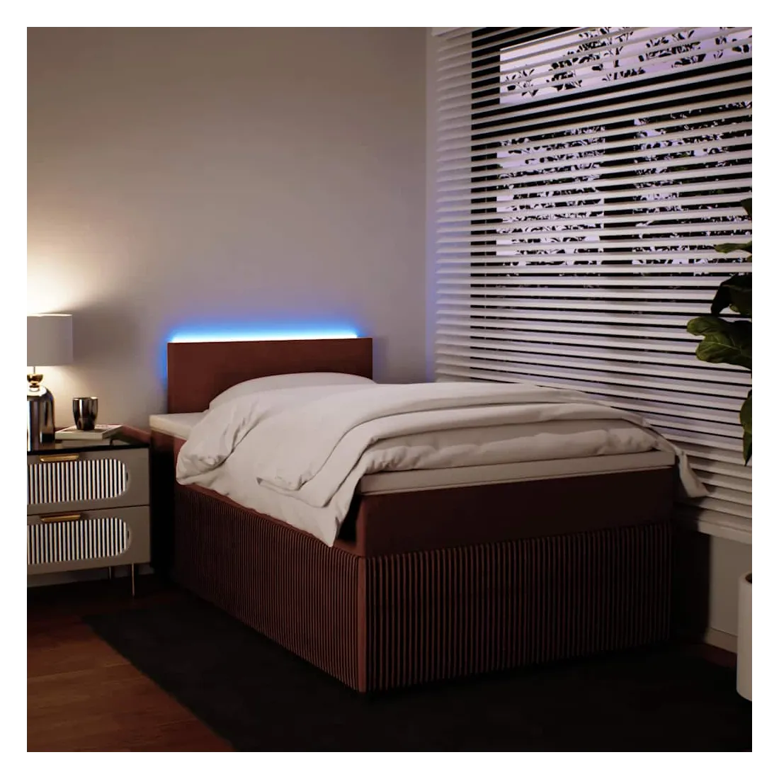 vidaXLUtilisez ce lit à sommier pour profiter d'une nuit de sommeil réparatrice ! Il vous offre une relaxation maximale et un sommeil agréable. Matériau doux et confortable : le tissu en velours présente une surface douce et lisse qui offre une sensation agréable contre la peau, vous apportant chaleur et confort ultime.Matelas à ressorts ensachés : ce matelas à ressorts ensachés comporte des ressorts ensachés individuels qui fonctionnent indépendamment pour offrir un soutien personnalisé en réagissant uniquement à la pression exercée dans chaque zone. Cette conception empêche « l'enroulement » et réduit le transfert de mouvement par rapport aux matelas traditionnels à ressorts ouverts. Chaque ressort ensaché soutient le corps individuellement.Lumières LED pour une ambiance agréable : ce lit est équipé de lumières LED qui peuvent être facilement réglées pour créer un spectacle lumineux personnalisé. Vous pouvez personnaliser les modes, les couleurs et la luminosité pour améliorer l'ambiance de votre espace intérieur.Surmatelas confortable : ce surmatelas améliore le soutien et le confort grâce à sa surface douce et respirante, tout en prolongeant la durée de vie de votre matelas. Sa housse amovible permet un lavage facile, ce qui facilite l'entretien. Bon à savoir :Ce produit est doté d'un connecteur USB qui nécessite une source d'alimentation USB de 5V certifiée (non incluse).Pour des raisons d'hygiène, le matelas ne peut pas être retourné si l'emballage est retiré ou ouvert.Seule la partie avec un symbole de ciseaux peut être coupée et seule la partie avec l'USB continuera à fonctionner comme avant.