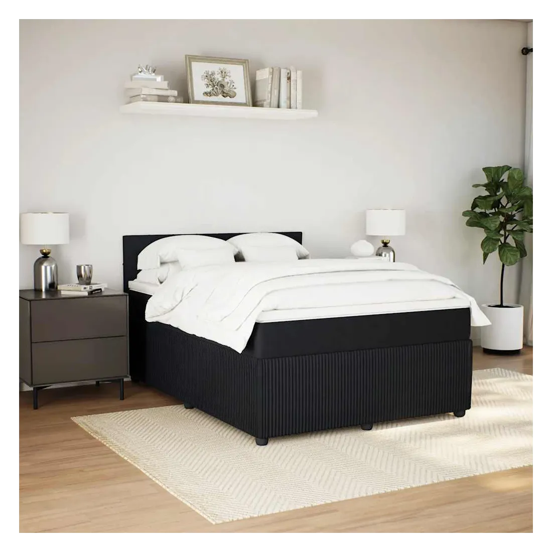 Sommier à lattes de lit et matelas Noir 160x200 cm Velours