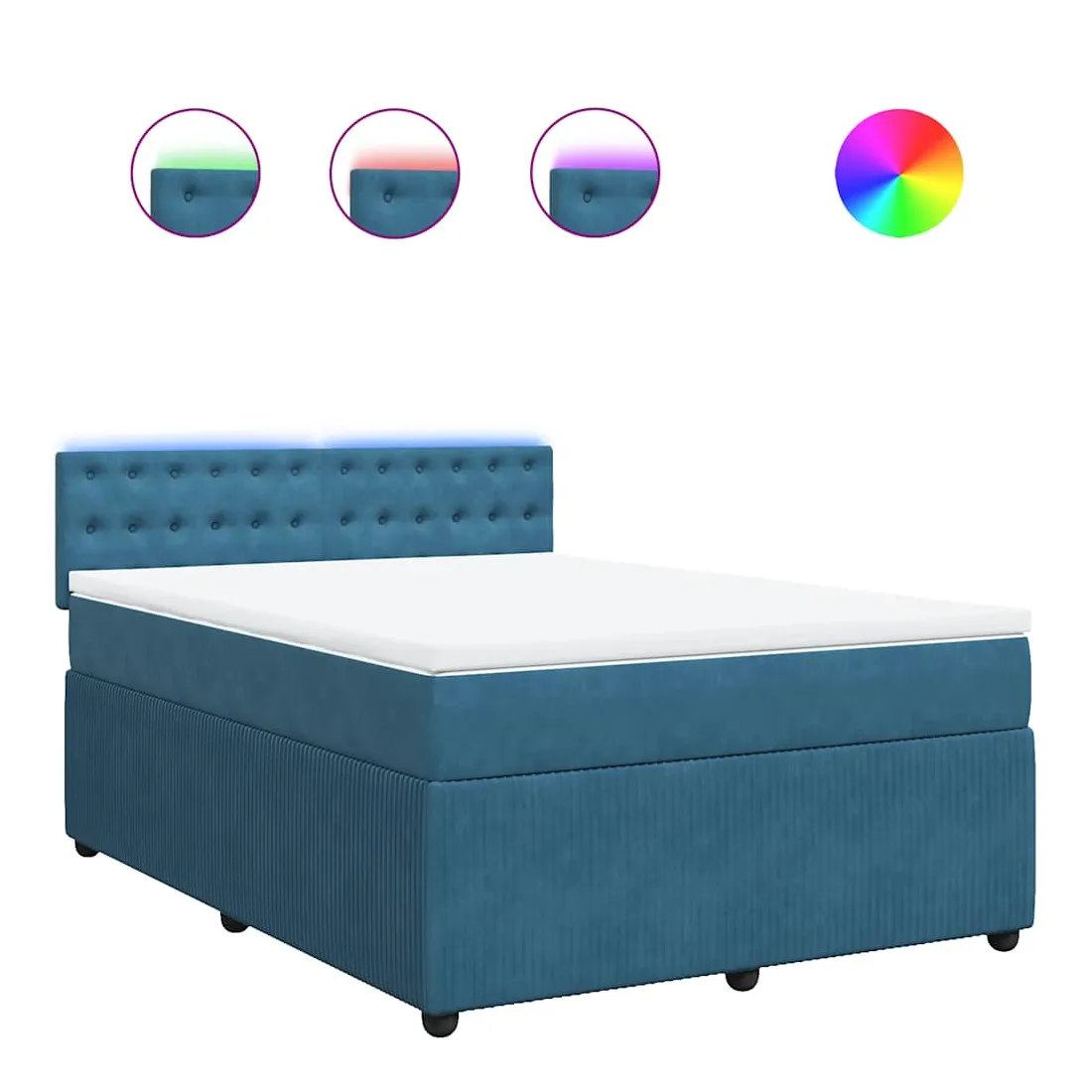 Utilisez ce lit à sommier pour profiter d'une nuit de sommeil réparatrice ! Il vous offre une relaxation maximale et un sommeil agréable. Matériau doux et confortable : le tissu en velours présente une surface douce et lisse qui offre une sensation agréable contre la peau, vous apportant chaleur et confort ultime.Matelas à ressorts ensachés : ce matelas à ressorts ensachés comporte des ressorts ensachés individuels qui fonctionnent indépendamment pour offrir un soutien personnalisé en réagissant uniquement à la pression exercée dans chaque zone. Cette conception empêche « l'enroulement » et réduit le transfert de mouvement par rapport aux matelas traditionnels à ressorts ouverts. Chaque ressort ensaché soutient le corps individuellement.Lumières LED pour une ambiance agréable : ce lit est équipé de lumières LED qui peuvent être facilement réglées pour créer un spectacle lumineux personnalisé. Vous pouvez personnaliser les modes, les couleurs et la luminosité pour améliorer l'ambiance de votre espace intérieur.Surmatelas confortable : ce surmatelas améliore le soutien et le confort grâce à sa surface douce et respirante, tout en prolongeant la durée de vie de votre matelas. Sa housse amovible permet un lavage facile, ce qui facilite l'entretien. Bon à savoir :Ce produit est doté d'un connecteur USB qui nécessite une source d'alimentation USB de 5V certifiée (non incluse).Pour des raisons d'hygiène, le matelas ne peut pas être retourné si l'emballage est retiré ou ouvert.Seule la partie avec un symbole de ciseaux peut être coupée et seule la partie avec l'USB continuera à fonctionner comme avant.