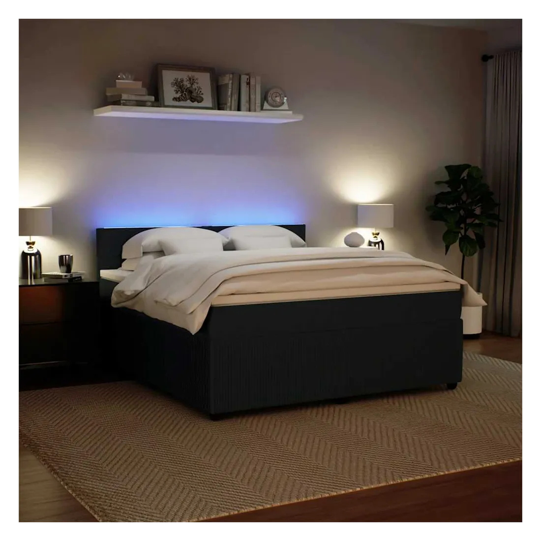 Utilisez ce lit à sommier pour profiter d'une nuit de sommeil réparatrice ! Il vous offre une relaxation maximale et un sommeil agréable. Matériau doux et confortable : le tissu en velours présente une surface douce et lisse qui offre une sensation agréable contre la peau, vous apportant chaleur et confort ultime.Matelas à ressorts ensachés : ce matelas à ressorts ensachés comporte des ressorts ensachés individuels qui fonctionnent indépendamment pour offrir un soutien personnalisé en réagissant uniquement à la pression exercée dans chaque zone. Cette conception empêche « l'enroulement » et réduit le transfert de mouvement par rapport aux matelas traditionnels à ressorts ouverts. Chaque ressort ensaché soutient le corps individuellement.Lumières LED pour une ambiance agréable : ce lit est équipé de lumières LED qui peuvent être facilement réglées pour créer un spectacle lumineux personnalisé. Vous pouvez personnaliser les modes, les couleurs et la luminosité pour améliorer l'ambiance de votre espace intérieur.Surmatelas confortable : ce surmatelas améliore le soutien et le confort grâce à sa surface douce et respirante, tout en prolongeant la durée de vie de votre matelas. Sa housse amovible permet un lavage facile, ce qui facilite l'entretien. Bon à savoir :Ce produit est doté d'un connecteur USB qui nécessite une source d'alimentation USB de 5V certifiée (non incluse).Pour des raisons d'hygiène, le matelas ne peut pas être retourné si l'emballage est retiré ou ouvert.Seule la partie avec un symbole de ciseaux peut être coupée et seule la partie avec l'USB continuera à fonctionner comme avant.