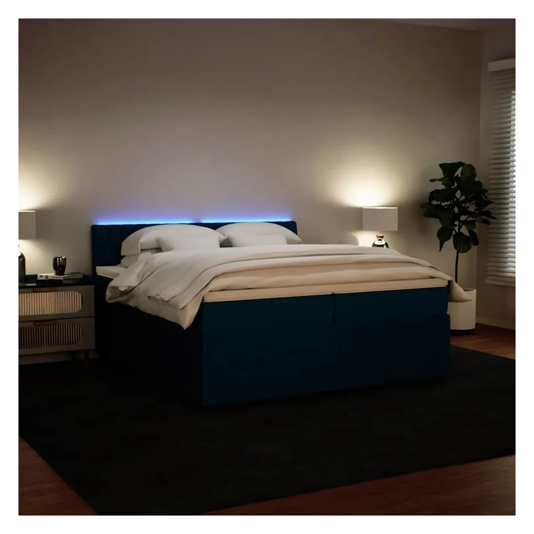 Utilisez ce lit à sommier pour profiter d'une nuit de sommeil réparatrice ! Il vous offre une relaxation maximale et un sommeil agréable. Matériau doux et confortable : le tissu en velours présente une surface douce et lisse qui offre une sensation agréable contre la peau, vous apportant chaleur et confort ultime.Matelas à ressorts ensachés : ce matelas à ressorts ensachés comporte des ressorts ensachés individuels qui fonctionnent indépendamment pour offrir un soutien personnalisé en réagissant uniquement à la pression exercée dans chaque zone. Cette conception empêche « l'enroulement » et réduit le transfert de mouvement par rapport aux matelas traditionnels à ressorts ouverts. Chaque ressort ensaché soutient le corps individuellement.Lumières LED pour une ambiance agréable : ce lit est équipé de lumières LED qui peuvent être facilement réglées pour créer un spectacle lumineux personnalisé. Vous pouvez personnaliser les modes, les couleurs et la luminosité pour améliorer l'ambiance de votre espace intérieur.Surmatelas confortable : ce surmatelas améliore le soutien et le confort grâce à sa surface douce et respirante, tout en prolongeant la durée de vie de votre matelas. Sa housse amovible permet un lavage facile, ce qui facilite l'entretien. Bon à savoir :Ce produit est doté d'un connecteur USB qui nécessite une source d'alimentation USB de 5V certifiée (non incluse).Pour des raisons d'hygiène, le matelas ne peut pas être retourné si l'emballage est retiré ou ouvert.Seule la partie avec un symbole de ciseaux peut être coupée et seule la partie avec l'USB continuera à fonctionner comme avant.