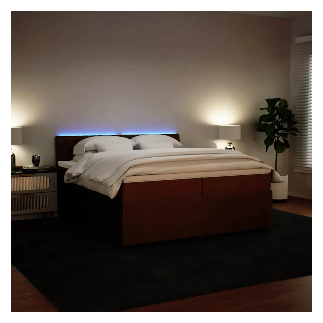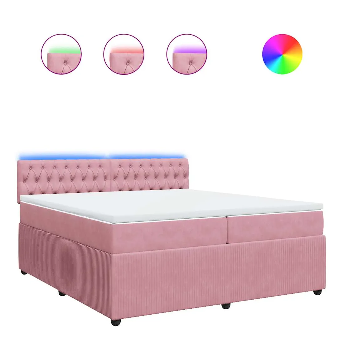 Utilisez ce lit à sommier pour profiter d'une nuit de sommeil réparatrice ! Il vous offre une relaxation maximale et un sommeil agréable. Matériau doux et confortable : le tissu en velours présente une surface douce et lisse qui offre une sensation agréable contre la peau, vous apportant chaleur et confort ultime.Matelas à ressorts ensachés : ce matelas à ressorts ensachés comporte des ressorts ensachés individuels qui fonctionnent indépendamment pour offrir un soutien personnalisé en réagissant uniquement à la pression exercée dans chaque zone. Cette conception empêche « l'enroulement » et réduit le transfert de mouvement par rapport aux matelas traditionnels à ressorts ouverts. Chaque ressort ensaché soutient le corps individuellement.Lumières LED pour une ambiance agréable : ce lit est équipé de lumières LED qui peuvent être facilement réglées pour créer un spectacle lumineux personnalisé. Vous pouvez personnaliser les modes, les couleurs et la luminosité pour améliorer l'ambiance de votre espace intérieur.Surmatelas confortable : ce surmatelas améliore le soutien et le confort grâce à sa surface douce et respirante, tout en prolongeant la durée de vie de votre matelas. Sa housse amovible permet un lavage facile, ce qui facilite l'entretien. Bon à savoir :Ce produit est doté d'un connecteur USB qui nécessite une source d'alimentation USB de 5V certifiée (non incluse).Pour des raisons d'hygiène, le matelas ne peut pas être retourné si l'emballage est retiré ou ouvert.Seule la partie avec un symbole de ciseaux peut être coupée et seule la partie avec l'USB continuera à fonctionner comme avant.
