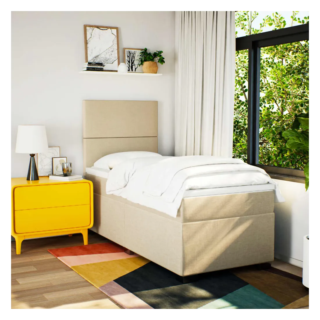 Utilisez ce lit à sommier pour profiter d'une nuit de sommeil réparatrice ! Il vous offre une relaxation maximale et un sommeil agréable. Matériau doux et durable : le tissu en polyester allie douceur, respirabilité et durabilité, vous garantissant un confort et une convivialité ultimes.Matelas à ressorts ensachés : ce matelas à ressorts ensachés comporte des ressorts ensachés individuels qui fonctionnent indépendamment pour offrir un soutien personnalisé en réagissant uniquement à la pression exercée dans chaque zone. Cette conception empêche « l'enroulement » et réduit le transfert de mouvement par rapport aux matelas traditionnels à ressorts ouverts. Chaque ressort ensaché soutient le corps individuellement.Tête de lit réglable en hauteur : la tête de lit est réglable en hauteur pour s'adapter à vos préférences.Surmatelas confortable : ce surmatelas améliore le soutien et le confort grâce à sa surface douce et respirante, tout en prolongeant la durée de vie de votre matelas. Sa housse amovible permet un lavage facile, ce qui facilite l'entretien.Lattes pour un soutien optimal : le cadre de lit est complété par des lattes pour offrir un soutien et une respirabilité essentiels à votre matelas. Bon à savoir :Pour des raisons d'hygiène, le matelas ne peut pas être retourné si l'emballage est retiré ou ouvert.