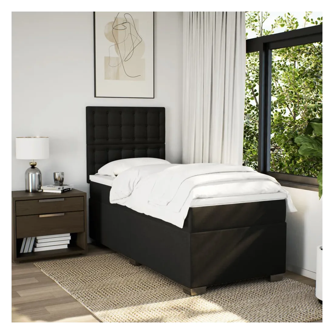 Utilisez ce lit à sommier pour profiter d'une nuit de sommeil réparatrice ! Il vous offre une relaxation maximale et un sommeil agréable. Matériau doux et durable : le tissu en polyester allie douceur, respirabilité et durabilité, vous garantissant un confort et une convivialité ultimes.Matelas à ressorts ensachés : ce matelas à ressorts ensachés comporte des ressorts ensachés individuels qui fonctionnent indépendamment pour offrir un soutien personnalisé en réagissant uniquement à la pression exercée dans chaque zone. Cette conception empêche « l'enroulement » et réduit le transfert de mouvement par rapport aux matelas traditionnels à ressorts ouverts. Chaque ressort ensaché soutient le corps individuellement.Tête de lit réglable en hauteur : la tête de lit est réglable en hauteur pour s'adapter à vos préférences.Surmatelas confortable : ce surmatelas améliore le soutien et le confort grâce à sa surface douce et respirante, tout en prolongeant la durée de vie de votre matelas. Sa housse amovible permet un lavage facile, ce qui facilite l'entretien.Lattes pour un soutien optimal : le cadre de lit est complété par des lattes pour offrir un soutien et une respirabilité essentiels à votre matelas. Bon à savoir :Pour des raisons d'hygiène, le matelas ne peut pas être retourné si l'emballage est retiré ou ouvert.