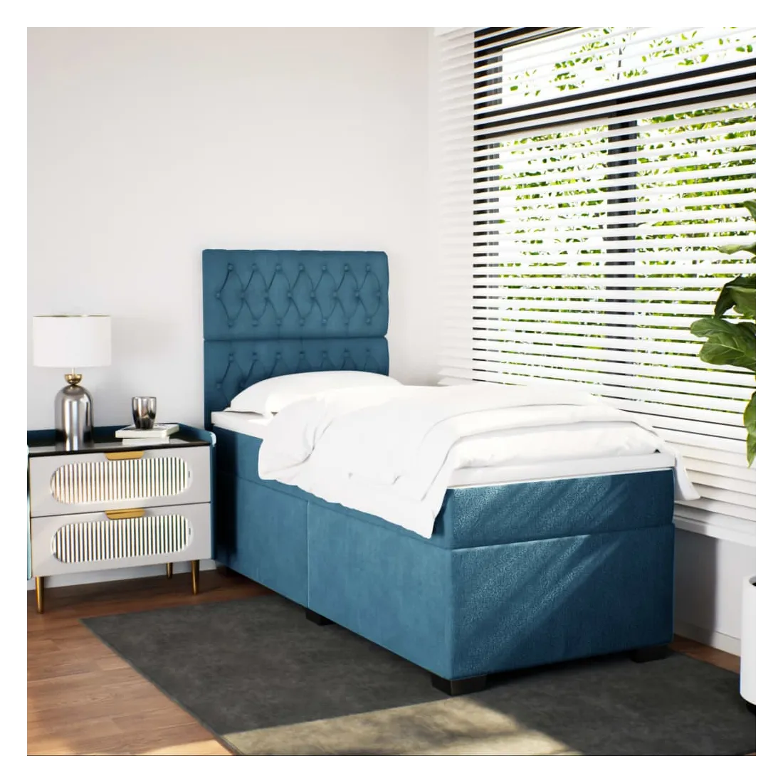 Utilisez ce lit à sommier pour profiter d'une nuit de sommeil réparatrice ! Il vous offre une relaxation maximale et un sommeil agréable. Matériau doux et confortable : le tissu en velours présente une surface douce et lisse qui offre une sensation agréable contre la peau, vous apportant chaleur et confort ultime.Matelas à ressorts ensachés : ce matelas à ressorts ensachés comporte des ressorts ensachés individuels qui fonctionnent indépendamment pour offrir un soutien personnalisé en réagissant uniquement à la pression exercée dans chaque zone. Cette conception empêche « l'enroulement » et réduit le transfert de mouvement par rapport aux matelas traditionnels à ressorts ouverts. Chaque ressort ensaché soutient le corps individuellement.Tête de lit réglable en hauteur : la tête de lit est réglable en hauteur pour s'adapter à vos préférences.Surmatelas confortable : ce surmatelas améliore le soutien et le confort grâce à sa surface douce et respirante, tout en prolongeant la durée de vie de votre matelas. Sa housse amovible permet un lavage facile, ce qui facilite l'entretien.Lattes pour un soutien optimal : le cadre de lit est complété par des lattes pour offrir un soutien et une respirabilité essentiels à votre matelas. Bon à savoir :Pour des raisons d'hygiène, le matelas ne peut pas être retourné si l'emballage est retiré ou ouvert.
