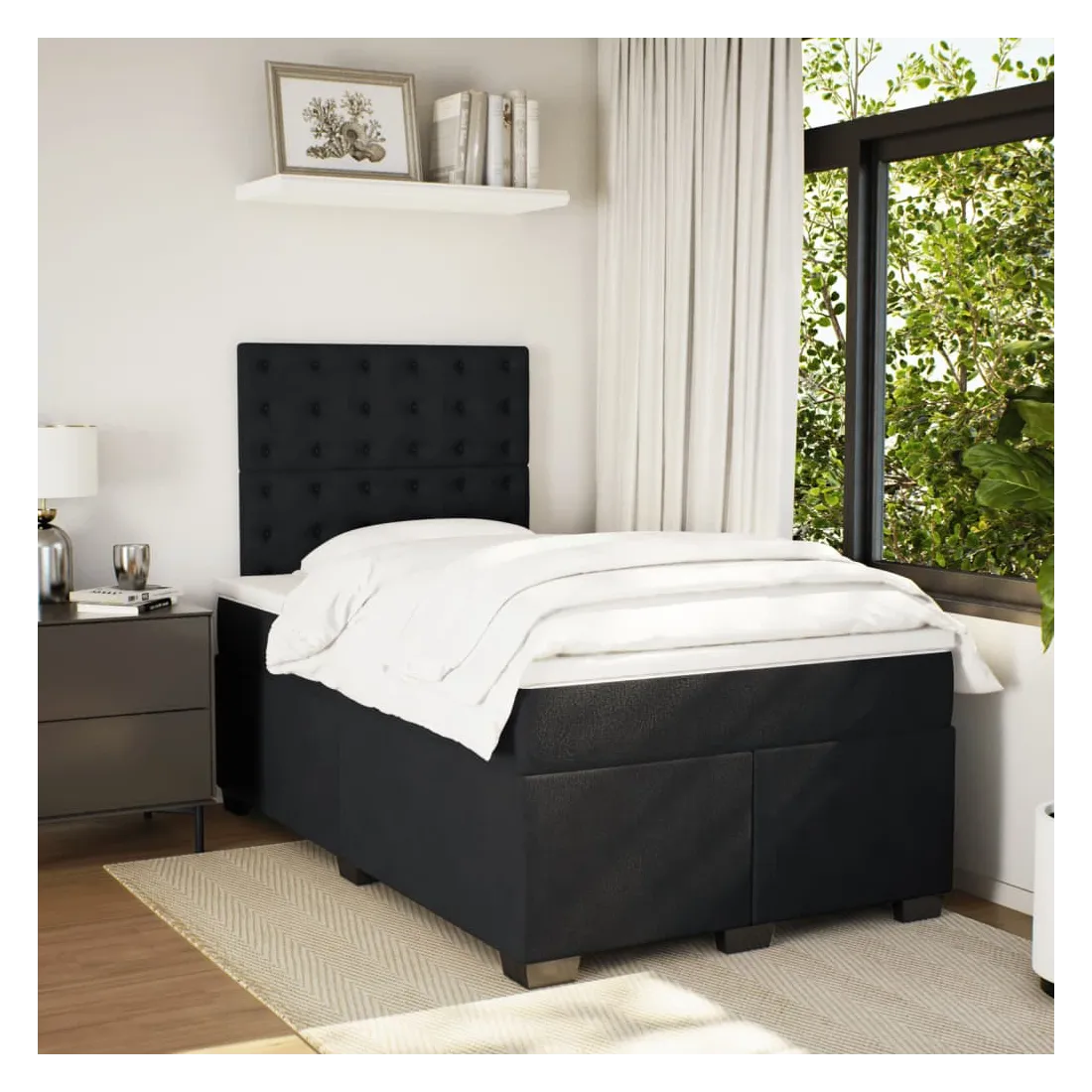 Utilisez ce lit à sommier pour profiter d'une nuit de sommeil réparatrice ! Il vous offre une relaxation maximale et un sommeil agréable. Matériau doux et confortable : le tissu en velours présente une surface douce et lisse qui offre une sensation agréable contre la peau, vous apportant chaleur et confort ultime.Matelas à ressorts ensachés : ce matelas à ressorts ensachés comporte des ressorts ensachés individuels qui fonctionnent indépendamment pour offrir un soutien personnalisé en réagissant uniquement à la pression exercée dans chaque zone. Cette conception empêche « l'enroulement » et réduit le transfert de mouvement par rapport aux matelas traditionnels à ressorts ouverts. Chaque ressort ensaché soutient le corps individuellement.Tête de lit réglable en hauteur : la tête de lit est réglable en hauteur pour s'adapter à vos préférences.Surmatelas confortable : ce surmatelas améliore le soutien et le confort grâce à sa surface douce et respirante, tout en prolongeant la durée de vie de votre matelas. Sa housse amovible permet un lavage facile, ce qui facilite l'entretien.Lattes pour un soutien optimal : le cadre de lit est complété par des lattes pour offrir un soutien et une respirabilité essentiels à votre matelas. Bon à savoir :Pour des raisons d'hygiène, le matelas ne peut pas être retourné si l'emballage est retiré ou ouvert.