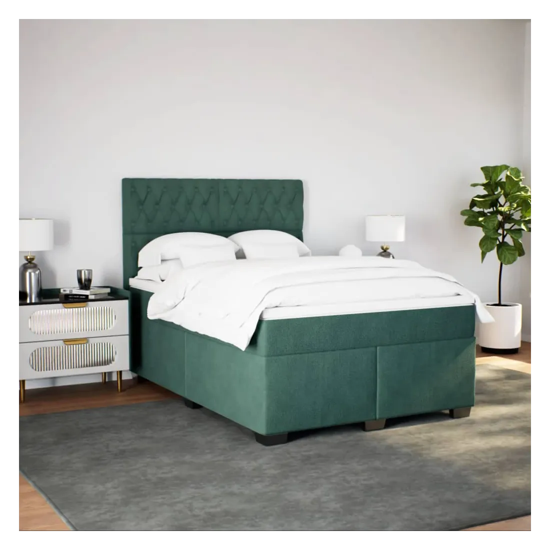 Sommier à lattes de lit et matelas Vert foncé 140x190cm Velours