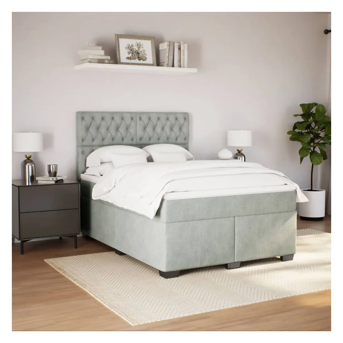 Sommier à lattes de lit et matelas Gris clair 140x200cm Velours