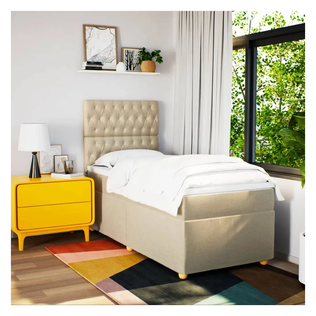 Utilisez ce lit à sommier pour profiter d'une nuit de sommeil réparatrice ! Il vous offre une relaxation maximale et un sommeil agréable. Matériau doux et durable : le tissu en polyester allie douceur, respirabilité et durabilité, vous garantissant un confort et une convivialité ultimes.Matelas à ressorts ensachés : ce matelas à ressorts ensachés comporte des ressorts ensachés individuels qui fonctionnent indépendamment pour offrir un soutien personnalisé en réagissant uniquement à la pression exercée dans chaque zone. Cette conception empêche « l'enroulement » et réduit le transfert de mouvement par rapport aux matelas traditionnels à ressorts ouverts. Chaque ressort ensaché soutient le corps individuellement.Tête de lit réglable en hauteur : la tête de lit est réglable en hauteur pour s'adapter à vos préférences.Surmatelas confortable : ce surmatelas améliore le soutien et le confort grâce à sa surface douce et respirante, tout en prolongeant la durée de vie de votre matelas. Sa housse amovible permet un lavage facile, ce qui facilite l'entretien.Lattes pour un soutien optimal : le cadre de lit est complété par des lattes pour offrir un soutien et une respirabilité essentiels à votre matelas. Bon à savoir :Pour des raisons d'hygiène, le matelas ne peut pas être retourné si l'emballage est retiré ou ouvert.
