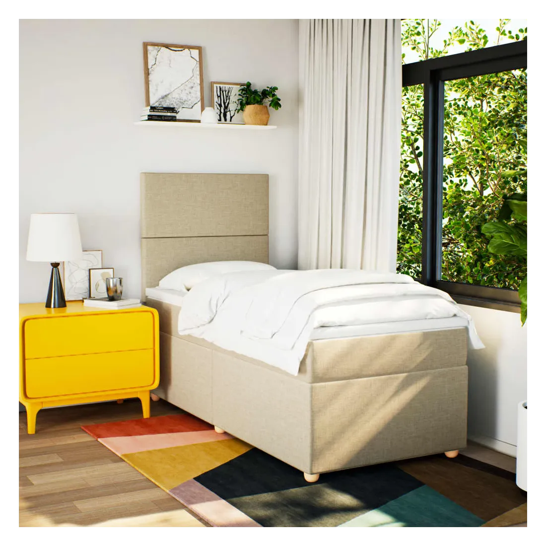 Utilisez ce lit à sommier pour profiter d'une nuit de sommeil réparatrice ! Il vous offre une relaxation maximale et un sommeil agréable. Matériau doux et durable : le tissu en polyester allie douceur, respirabilité et durabilité, vous garantissant un confort et une convivialité ultimes.Matelas à ressorts ensachés : ce matelas à ressorts ensachés comporte des ressorts ensachés individuels qui fonctionnent indépendamment pour offrir un soutien personnalisé en réagissant uniquement à la pression exercée dans chaque zone. Cette conception empêche « l'enroulement » et réduit le transfert de mouvement par rapport aux matelas traditionnels à ressorts ouverts. Chaque ressort ensaché soutient le corps individuellement.Tête de lit réglable en hauteur : la tête de lit est réglable en hauteur pour s'adapter à vos préférences.Surmatelas confortable : ce surmatelas améliore le soutien et le confort grâce à sa surface douce et respirante, tout en prolongeant la durée de vie de votre matelas. Sa housse amovible permet un lavage facile, ce qui facilite l'entretien.Lattes pour un soutien optimal : le cadre de lit est complété par des lattes pour offrir un soutien et une respirabilité essentiels à votre matelas. Bon à savoir :Pour des raisons d'hygiène, le matelas ne peut pas être retourné si l'emballage est retiré ou ouvert.