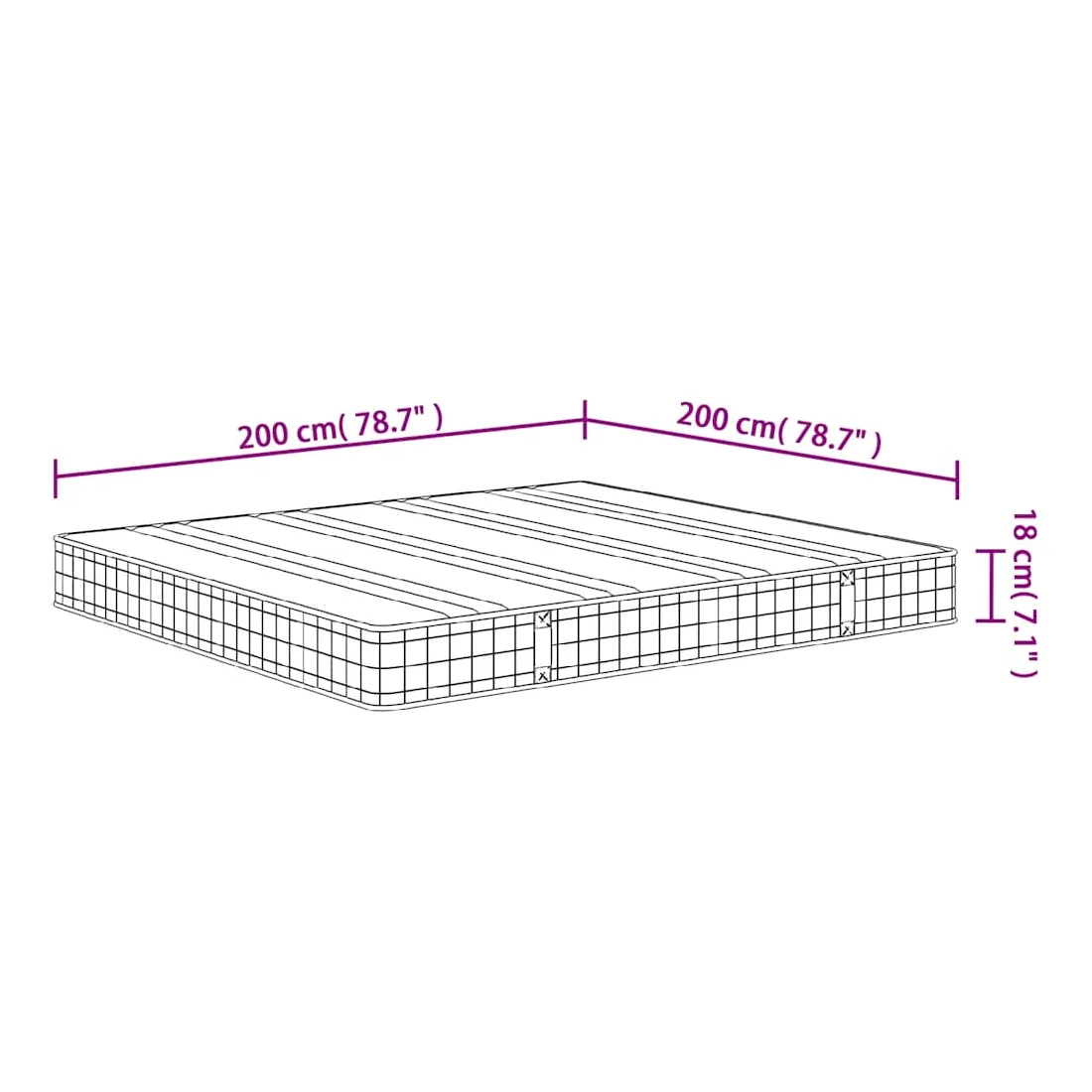 - Dimensions : 200 x 200 x 18 cm (l x L x é)