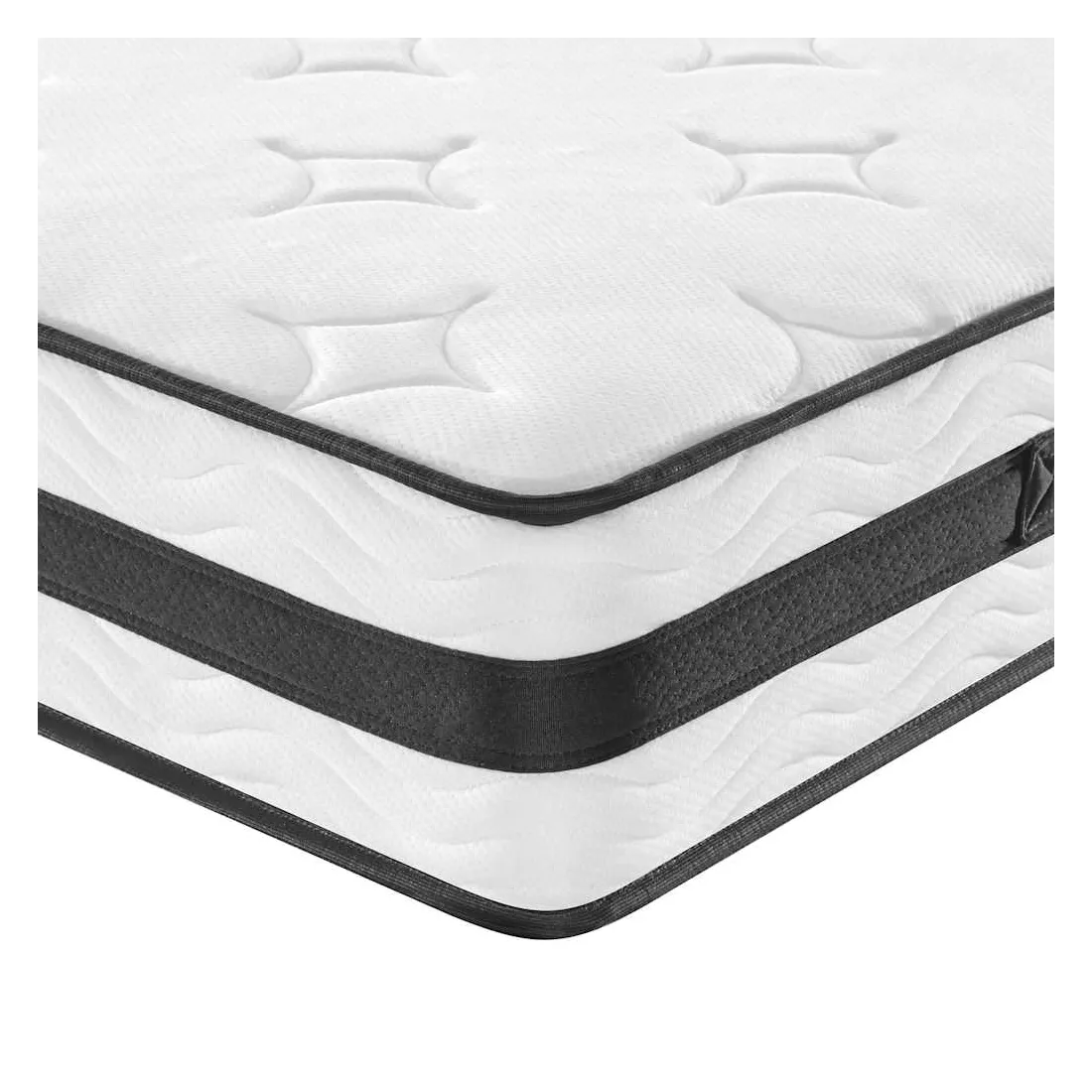Ce matelas à ressorts bonnell est conçu pour vous apporter une sensation agréable et une expérience de sommeil confortable à la maison. Durabilité et longévité : le tissu présente un aspect simple et épuré tout en restant respirant, doux pour la peau et durable. Excellent soutien : le système de ressorts bonnell se compose de ressorts d'acier en forme de sablier interconnectés, fermes et stables, qui constituent une base de soutien durable pour le matelas. Confort accru : le matelas à ressorts est conçu avec plusieurs couches, dont une couche de mousse, une couche de matelas isolant et une couche de ressorts. Cette combinaison offre une sensation de douceur et de confort pour toutes les positions de sommeil. En outre, le matelas absorbe efficacement les bruits et les vibrations provoqués par les mouvements de rotation, garantissant ainsi un sommeil paisible et non perturbé. Entretien facile : le matelas en mousse à ressorts est doté d'une longue fermeture éclair dans le bas, ce qui permet de retirer facilement la housse pour la nettoyer. Bon à savoir :Ce matelas est composé de deux noyaux de matelas individuels, combinés pour former un matelas unique et unifié.La housse du matelas est lavable jusqu'à 40 °C. Veillez à ne pas la laver fréquemment. Pour votre confort, le matelas est compressé et roulé dans une boîte, et vous pouvez facilement le déplacer et l'installer dans votre pièce.