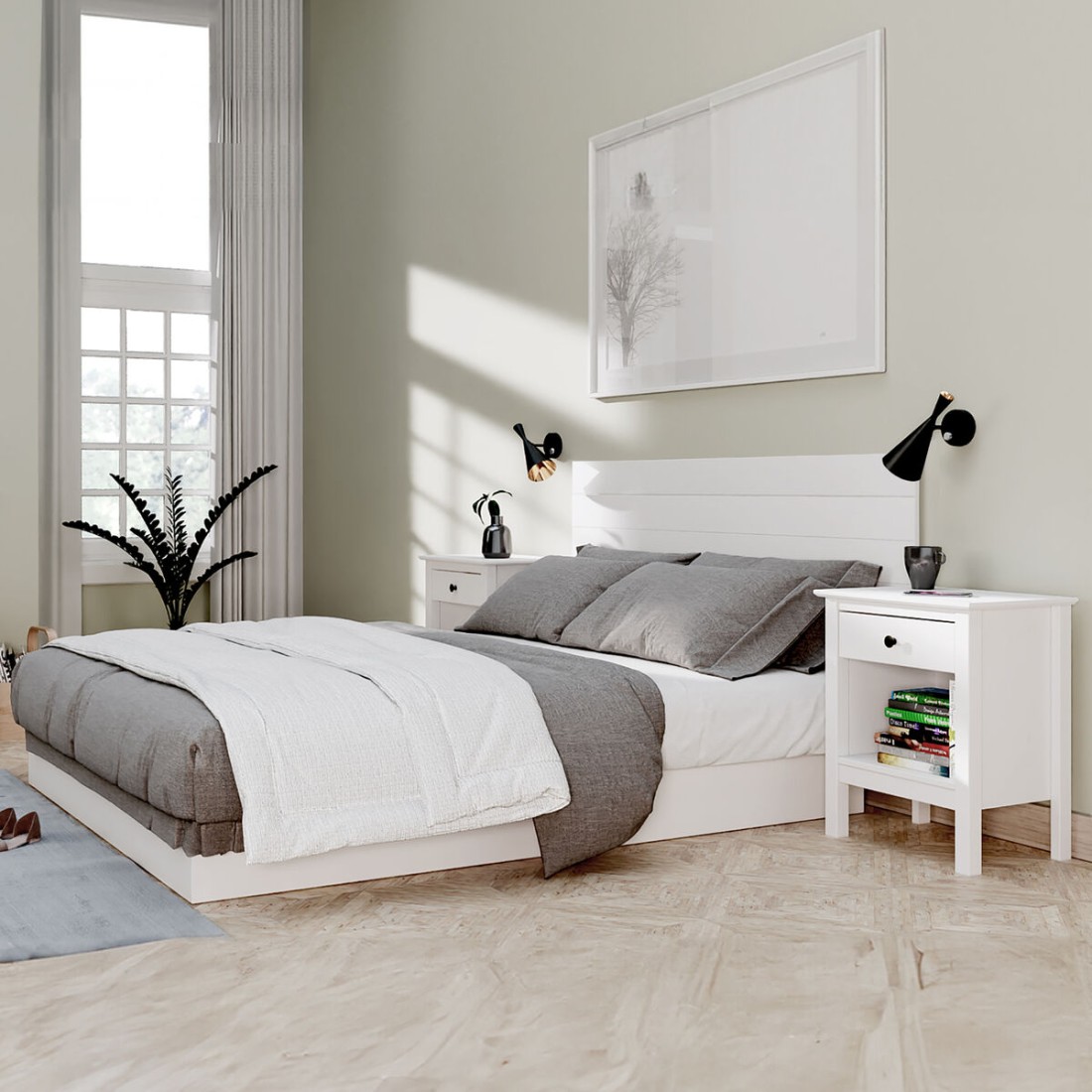 Mesita de Noche Alexandra House Living Blanco Metal Madera de pino 47 x 60 x 35 cm 1 cajón