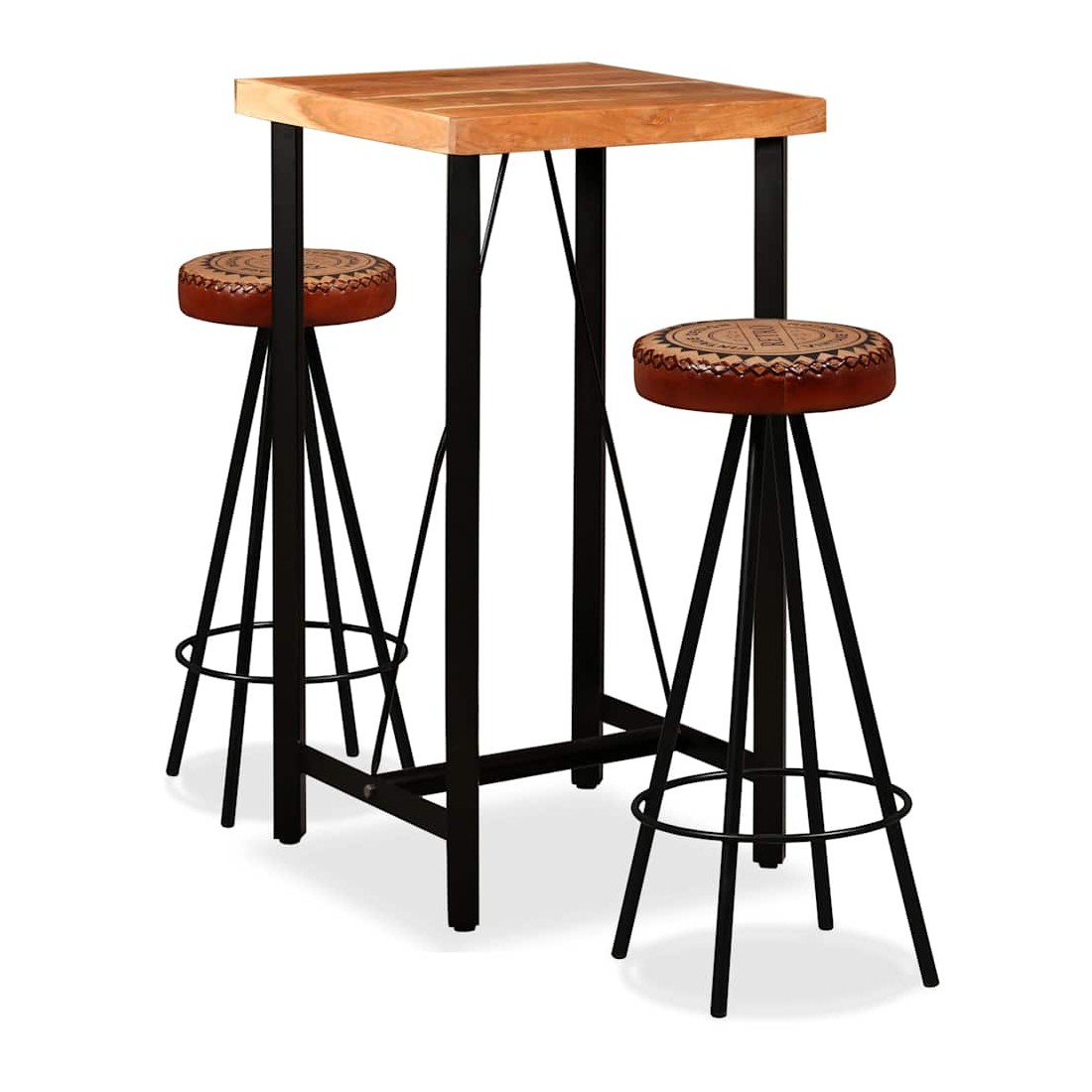 Ensemble de bar 3 pcs Bois d'acacia Cuir véritable et toile