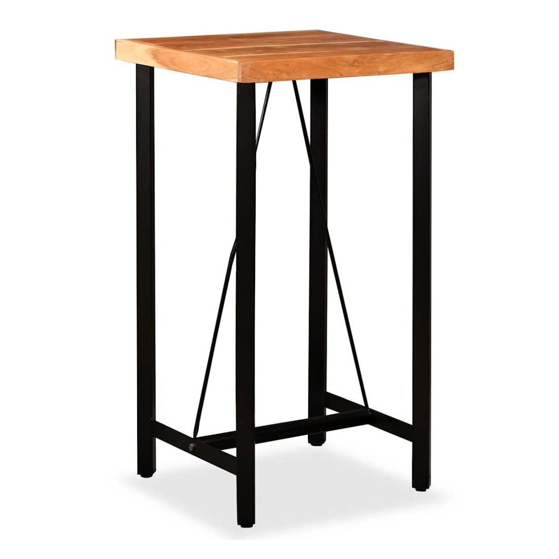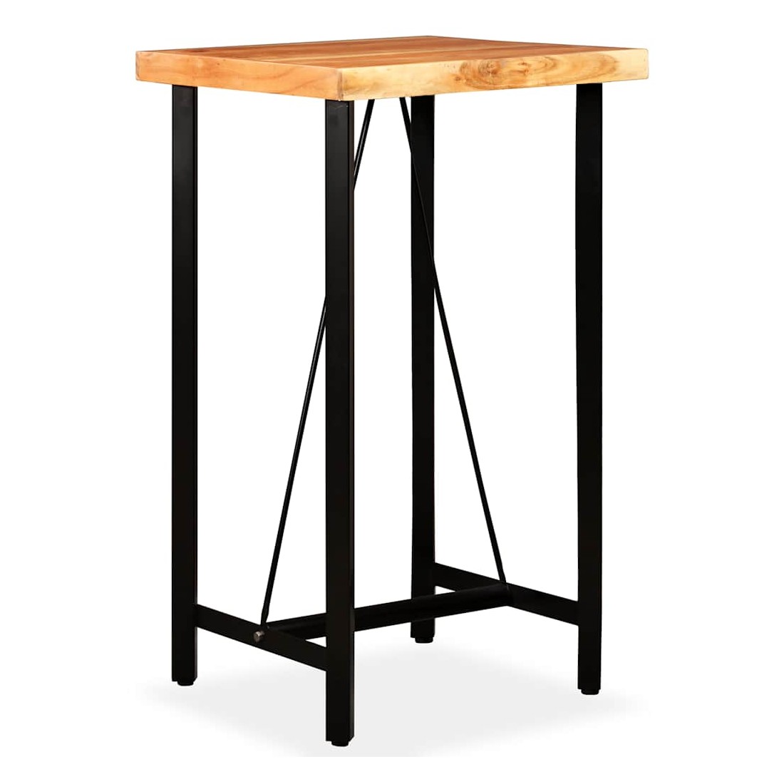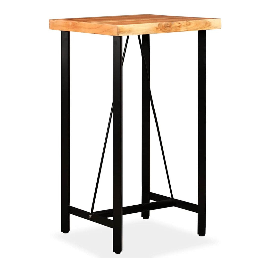 Cet ensemble de bar cool a un style industriel et sera un supplément distinctif à n'importe quelle maison, bar ou restaurant. La table de bar est en bois d'acacia massif qui est durable, stable et facile à nettoyer. Elle est entièrement faite à la main et les beaux grains de bois rendent chaque meuble unique et légèrement différent l'un de l'autre. Les pieds en acier fort rendent la table de bar très robuste et durable et ajoutent à son style industriel spectaculaire. Remarque importante : Les grains et les couleurs du bois peuvent varier d'une pièce à l'autre, ce qui rend chaque pièce unique; la livraison est aléatoire. Les tabourets de bar sont recouverts de cuir véritable doux au toucher et de toile, ce qui rend les tabourets extrêmement durables et confortables. Les pieds en acier font les tabourets très robustes et ajoutent à leur style industriel spectaculaire. La livraison comprend 1 table de bar et 2 tabourets de bar. L'assemblage est facile.