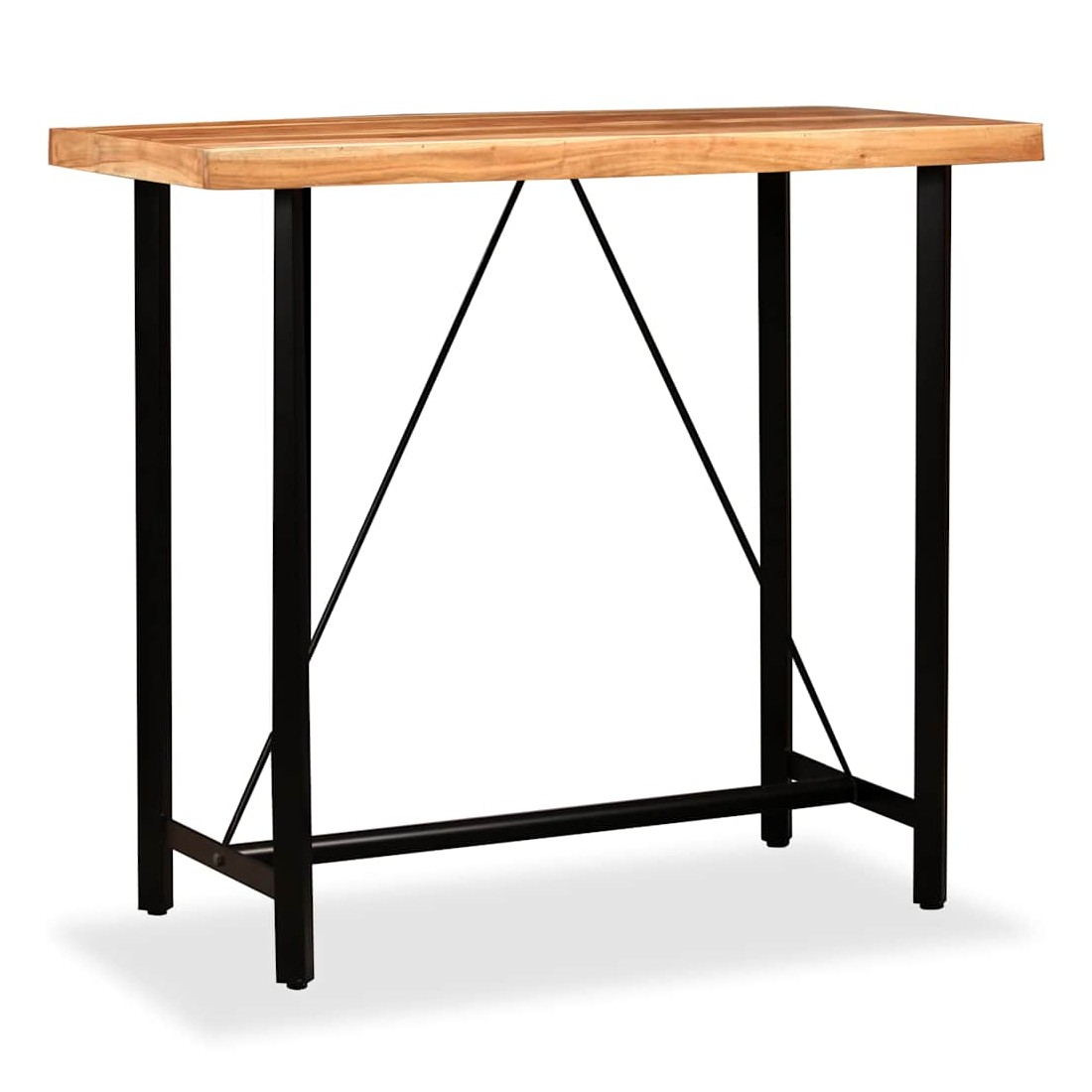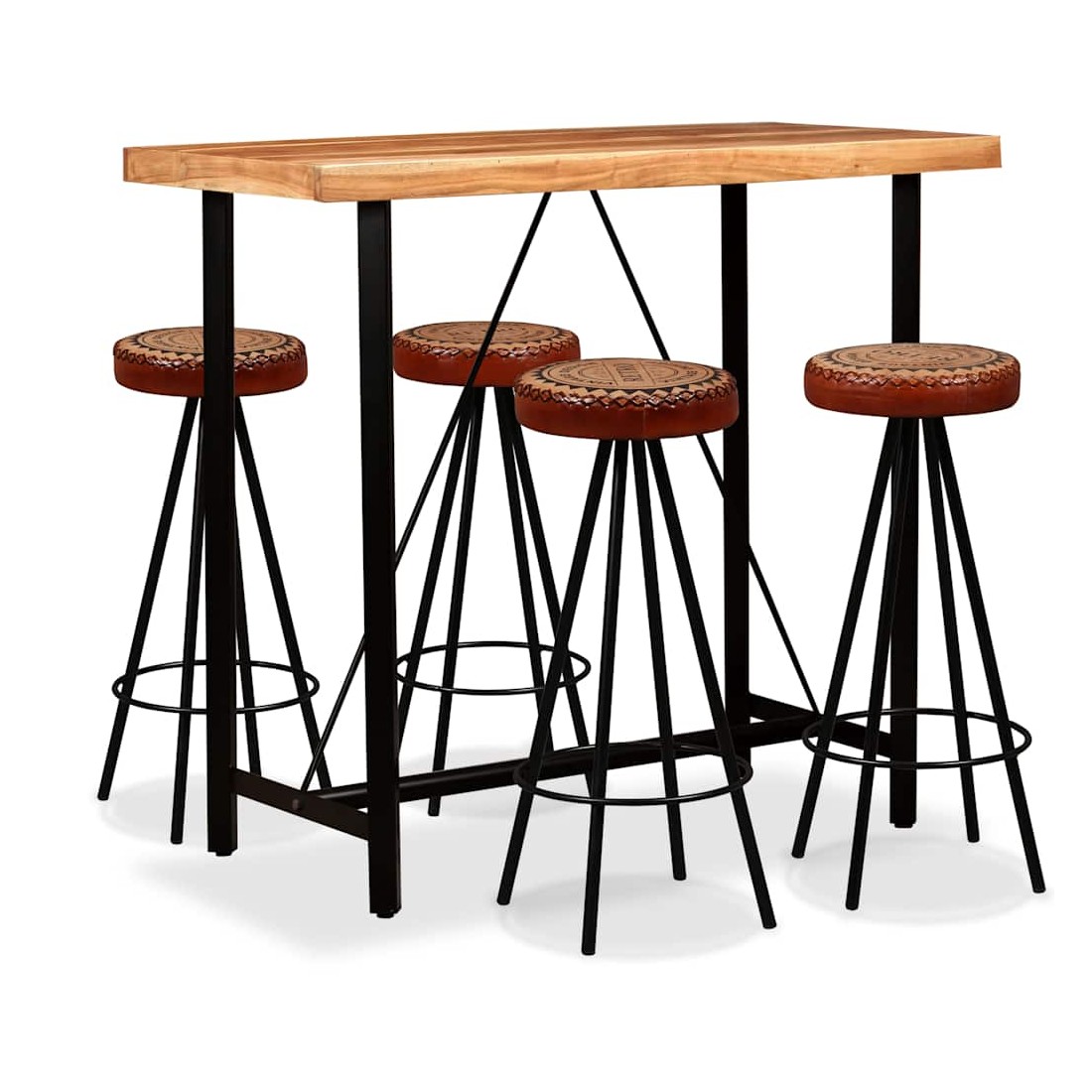 vidaXLCet ensemble de bar cool a un style industriel et sera un supplément distinctif à n'importe quelle maison, bar ou restaurant. La table de bar est en bois d'acacia massif qui est durable, stable et facile à nettoyer. Elle est entièrement faite à la main et les beaux grains de bois rendent chaque meuble unique et légèrement différent l'un de l'autre. Les pieds en acier fort rendent la table de bar très robuste et durable et ajoutent à son style industriel spectaculaire. Remarque importante : Les grains et les couleurs du bois peuvent varier d'une pièce à l'autre, ce qui rend chaque pièce unique; la livraison est aléatoire. Les tabourets de bar sont recouverts de cuir véritable doux au toucher et de toile, ce qui rend les tabourets extrêmement durables et confortables. Les pieds en acier font les tabourets très robustes et ajoutent à leur style industriel spectaculaire. La livraison comprend 1 table de bar et 4 tabourets de bar. L'assemblage est facile.