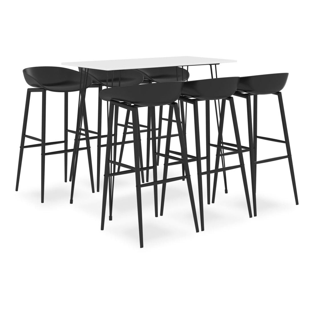 Avec un design moderne et contemporain, notre ensemble de bar est idéal pour les maisons, jardins, bars, pubs ou restaurants modernes. Son design épuré et contemporain complétera toute décoration intérieure. Le dessus de table est en MDF, facile à nettoyer. Le cadre métallique enduit de poudre ajoute à la stabilité et à la robustesse de la table de bar. Ces tabourets de pub ont un siège ergonomique avec un dossier bas intégré. Fabriquées en PP robuste et soutenues par des solides pieds en métal enduit de poudre, ces chaises de comptoir sont robustes et durables.
