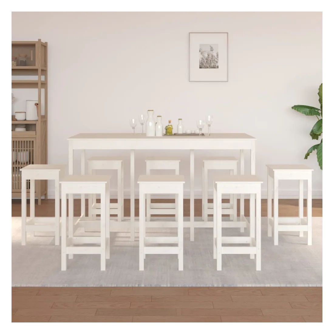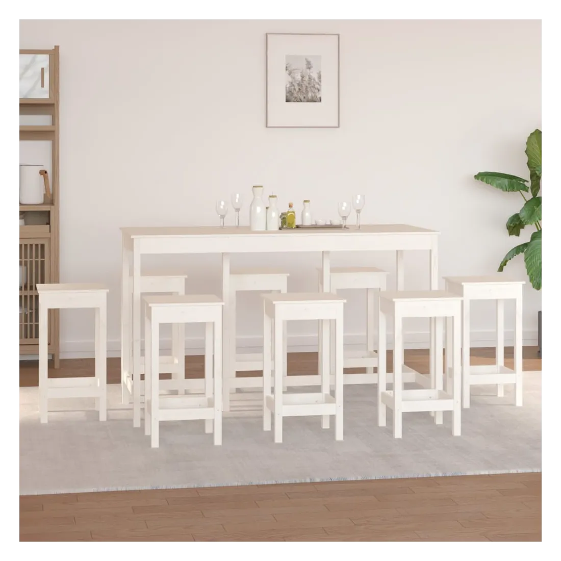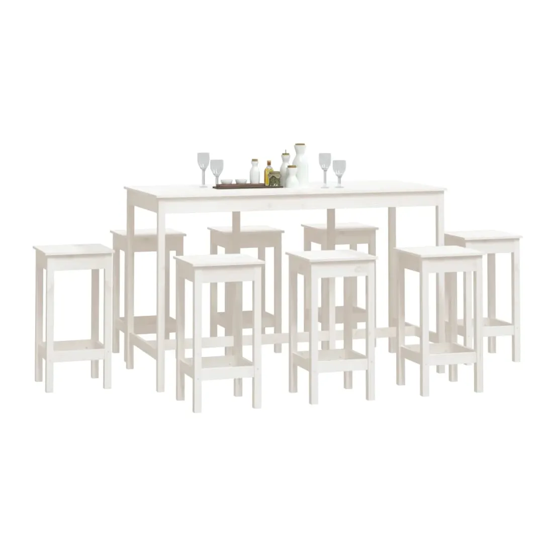 Ensemble de bar 9 pcs Blanc Bois de pin massif