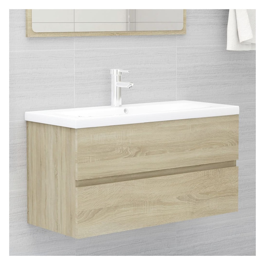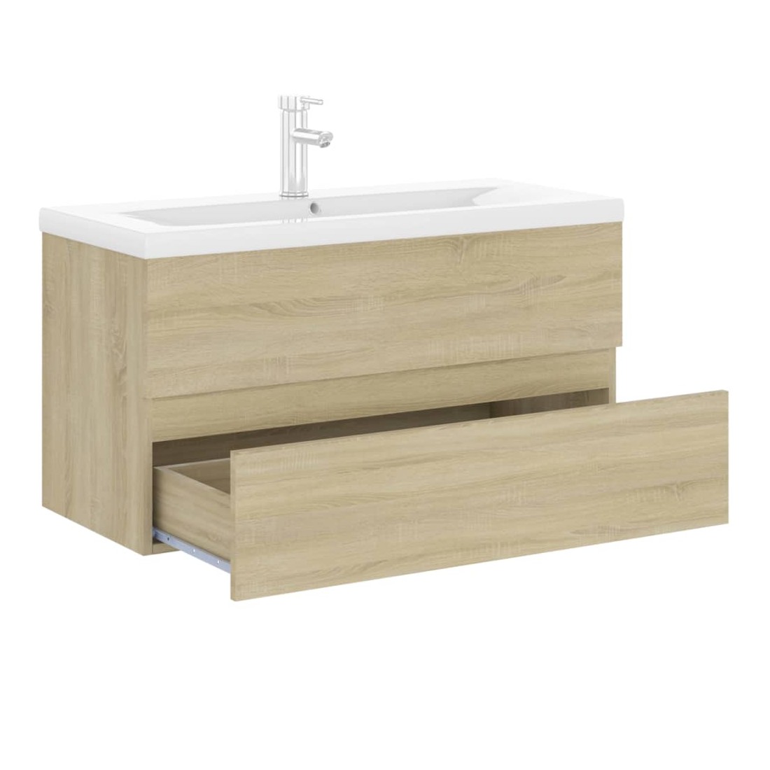 Armoire d'évier lavabo intégré chêne sonoma bois d'ingénierie