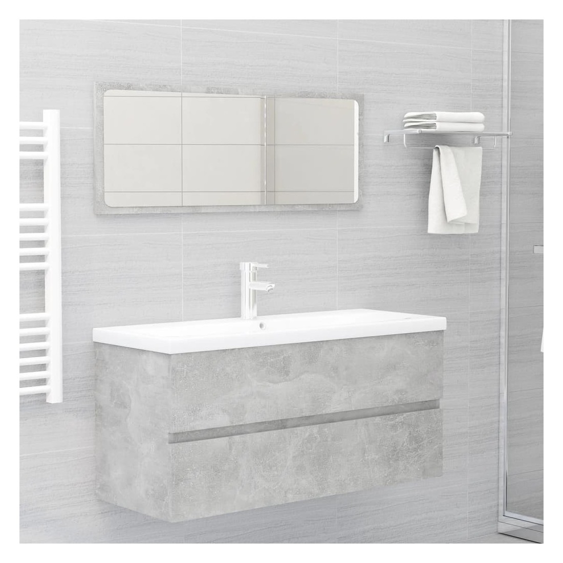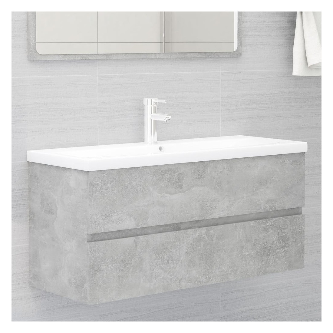 Armoire d'évier et lavabo intégré gris béton bois d'ingénierie