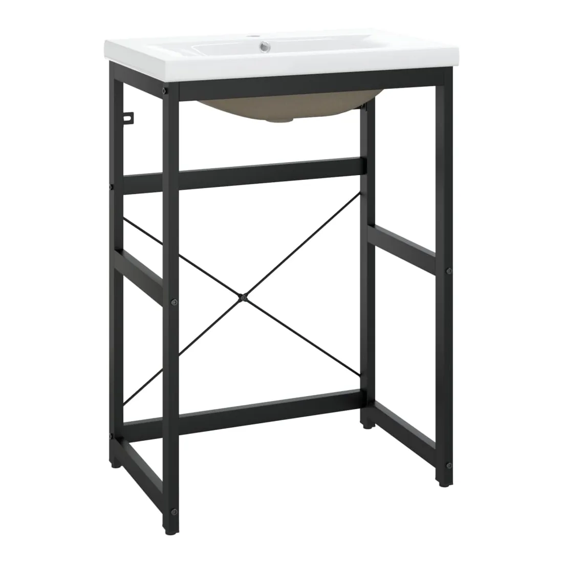 Ce cadre de lavabo de salle de bain avec une vasque à encastrer s'intègre parfaitement à votre salle de bain ou à votre salle d'eau, avec un aspect propre et ordonné. Le support de lavage est fabriqué en fer enduit de poudre, ce qui le rend stable et durable. Ce cadre de lavabo permet d'accéder facilement aux serviettes et aux paniers et crée un espace plus vaste qu'un rangement fermé. Fabriqué en céramique, le bassin peut non seulement servir de récipient pour un usage quotidien mais aussi d'ornement dans votre espace de vie. Grâce à son design tendance et contemporain, ce lavabo s'adaptera à tout décor. Un trop-plein est également prévu pour vidanger l'eau lorsque le lavabo est trop plein. Sa surface émaillée lui confère un design moderne et élégant. De plus, le cadre de lavabo et la