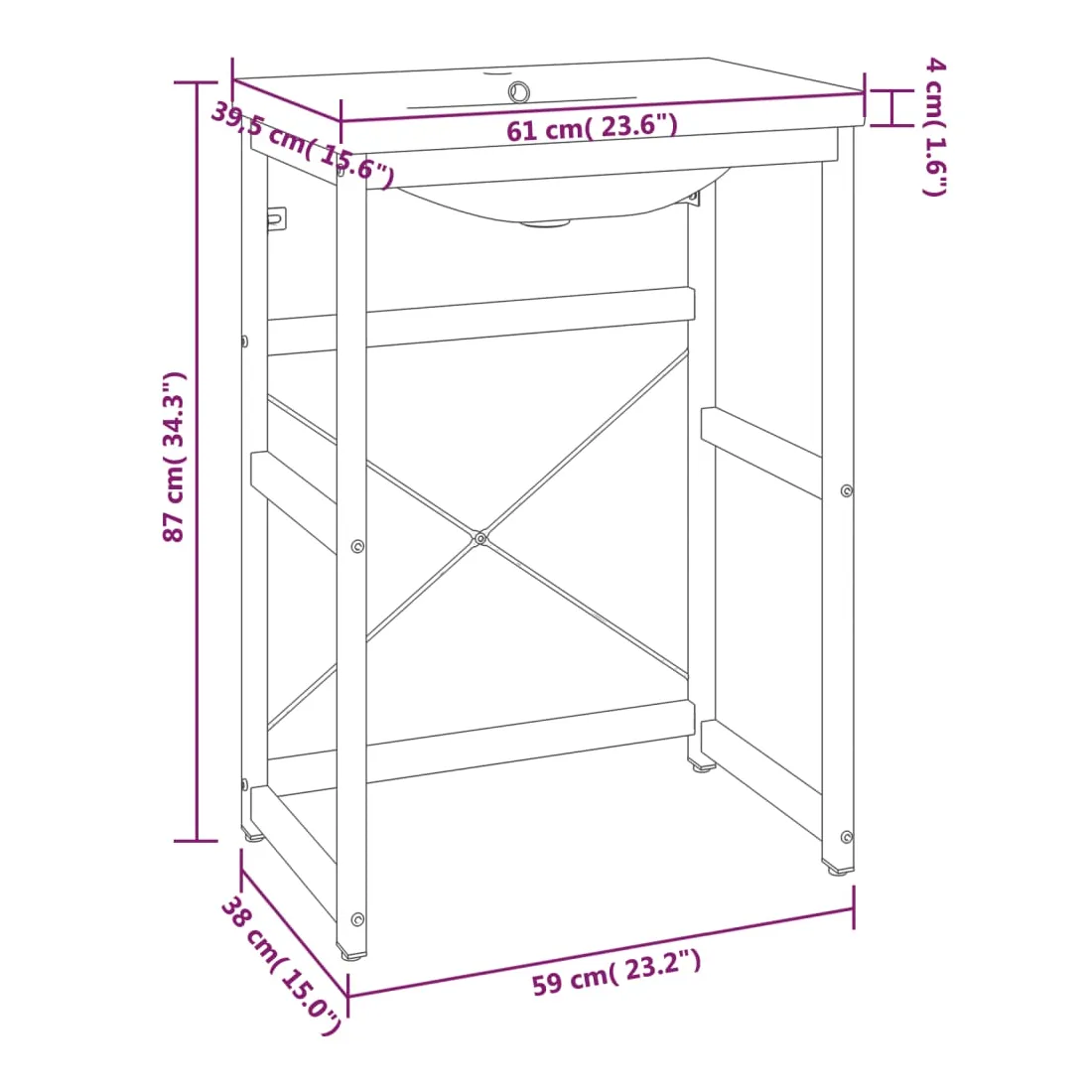 • Dimensions totales : 59 x 38 x 83 cm (L x l x H)
