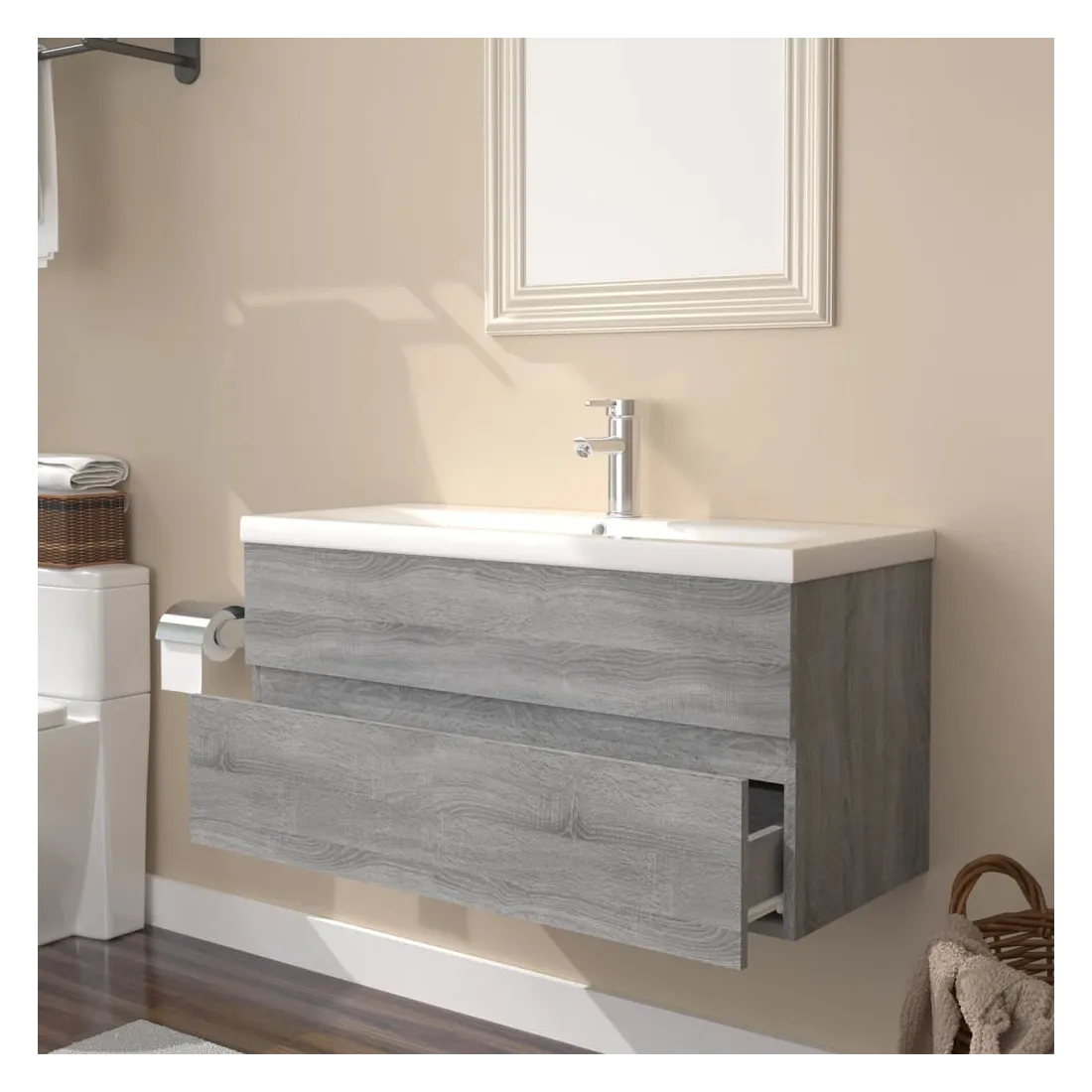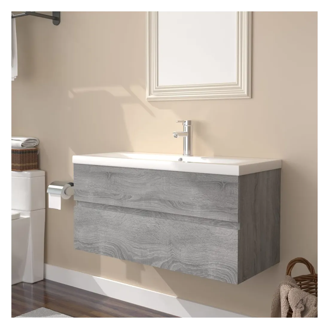 Meuble lavabo avec bassin intégré Sonoma gris Bois d'ingénierie
