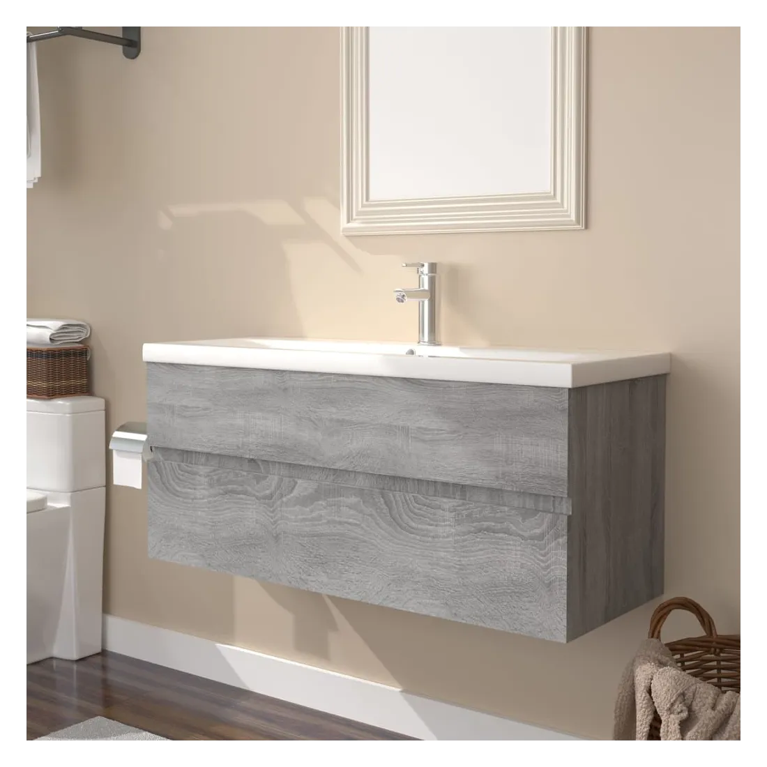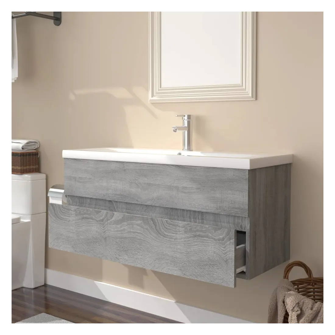 Meuble lavabo avec bassin intégré Sonoma gris Bois d'ingénierie