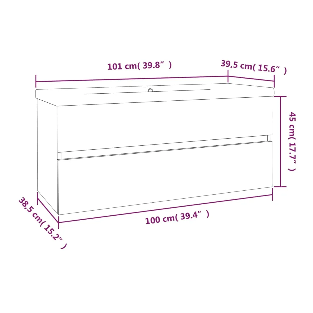 • Dimensions totales : 101 x 39,5 x 18,5 cm (L x l x H)