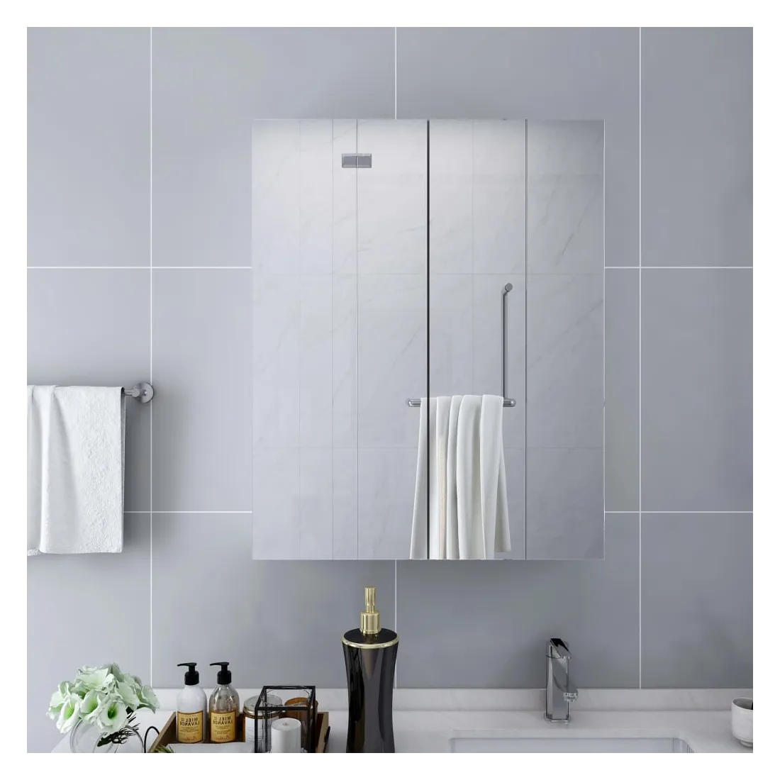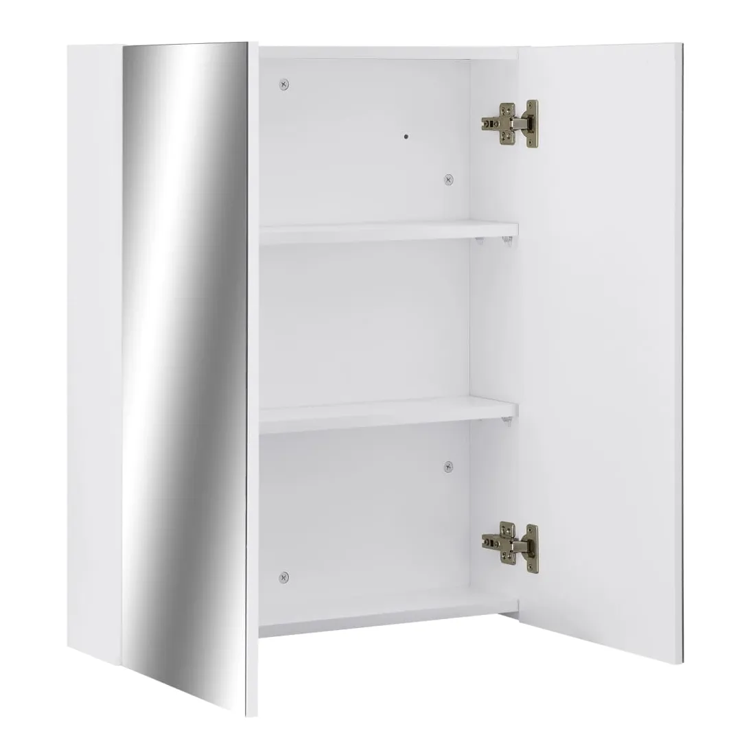 Ajoutez une touche d’esthétique et d’aspect agréable avec cette armoire à miroir de toilette, et ajoutez également un style contemporain à n’importe quelle pièce ! L’armoire à miroir murale est faite de verre et de MDF avec la surface en mélamine, ce qui la rend durable et stable. L’armoire dispose de 2 portes et d’un total de 3 compartiments, offrant suffisamment d’espace de rangement. Elles peuvent facilement ranger vos articles de toilette essentiels et articles de bain tels que savons, shampoing, dentifrice, etc. Élégante et fonctionnelle, cette armoire est destinée à rendre le design de votre pièce unique et exceptionnel !