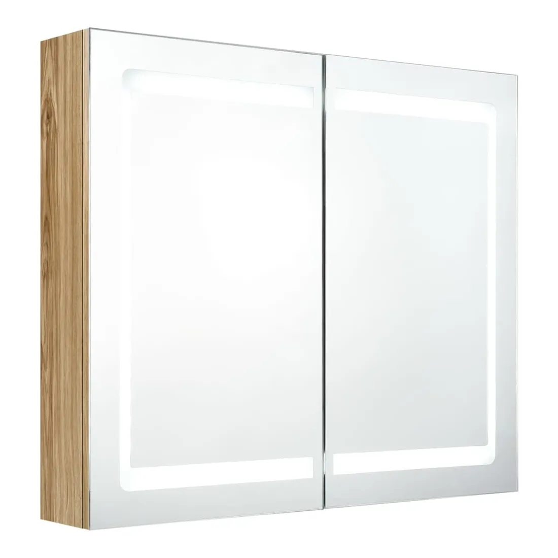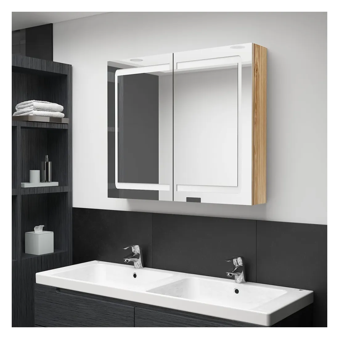 Introduisez une esthétique agréable dans votre salle de bain avec cette armoire à miroir à LED ! Cette armoire à miroir murale à LED ajoute une touche de style contemporain et une lumière douce et éclairante à toute pièce ! Cette armoire murale est fabriquée en panneaux MDF avec une finition mélaminée, garantissant une utilisation à long terme. Grâce aux deux bandes lumineuses à LED écoénergétiques, vous pouvez vous voir sous la lumière la plus pure pour le maquillage, les soins de la peau et les soins de la peau. Elle illumine votre pièce, votre visage et votre sourire. À l’intérieur, vous trouverez 3 étagères offrant un espace de rangement suffisant pour tous vos articles de toilette et accessoires de beauté. Vous pouvez facilement allumer/éteindre la lumière avec le bouton au fond. Élégant et fonctionnel, ce meuble saura sûrement rendre le design de votre pièce à l’origine exceptionnel ! Remarque :Ce produit est doté d'un connecteur USB, mais la source d'alimentation certifiée de USB 5V n'est pas incluse.