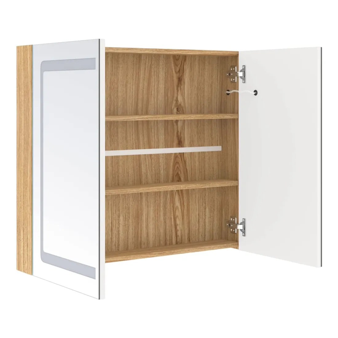 Introduisez une esthétique agréable dans votre salle de bain avec cette armoire à miroir à LED ! Cette armoire à miroir murale à LED ajoute une touche de style contemporain et une lumière douce et éclairante à toute pièce ! Cette armoire murale est fabriquée en panneaux MDF avec une finition mélaminée, garantissant une utilisation à long terme. Grâce aux deux bandes lumineuses à LED écoénergétiques, vous pouvez vous voir sous la lumière la plus pure pour le maquillage, les soins de la peau et les soins de la peau. Elle illumine votre pièce, votre visage et votre sourire. À l’intérieur, vous trouverez 3 étagères offrant un espace de rangement suffisant pour tous vos articles de toilette et accessoires de beauté. Vous pouvez facilement allumer/éteindre la lumière avec le bouton au fond. Élégant et fonctionnel, ce meuble saura sûrement rendre le design de votre pièce à l’origine exceptionnel ! Remarque :Ce produit est doté d'un connecteur USB, mais la source d'alimentation certifiée de USB 5V n'est pas incluse.