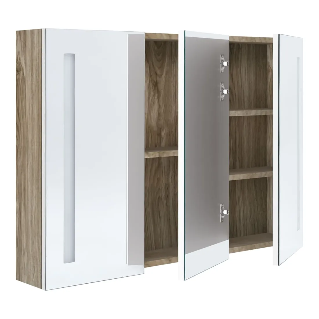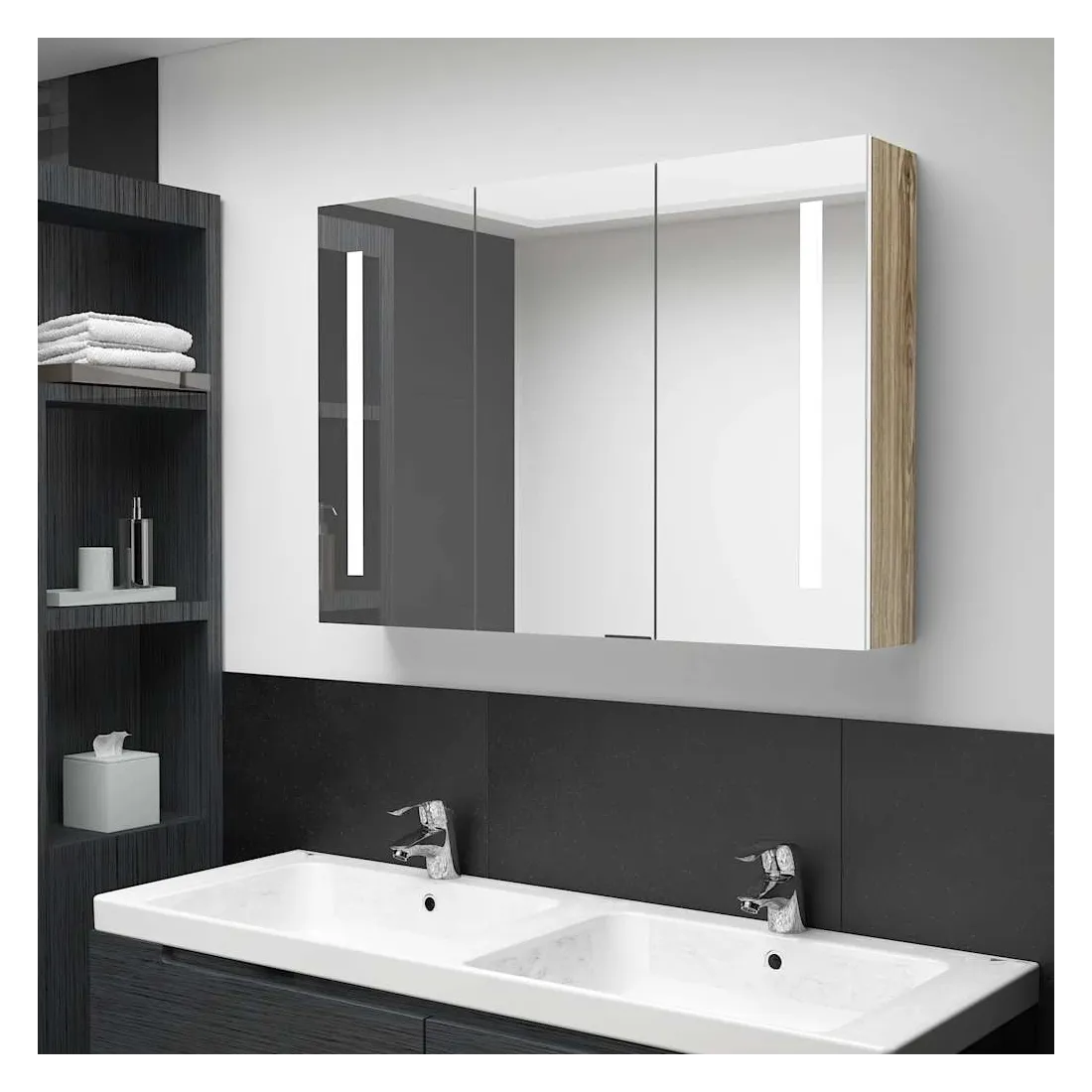 Introduisez une esthétique agréable dans votre salle de bain avec notre armoire à miroir de courtoisie LED ! Notre armoire murale à LED ajoute une touche de style contemporain et une lumière douce et éclairante à toute pièce ! Elle est faite de panneaux MDF de qualité avec une finition mélaminée, garantissant une utilisation à long terme. Grâce aux deux bandes lumineuses à LED écoénergétiques, vous pouvez vous voir sous la lumière la plus pure pour le maquillage, les soins de la peau et les soins de la peau. Elle illumine votre chambre, votre visage et votre sourire. À l’intérieur, vous trouverez 3 tablettes offrant un espace de rangement suffisant pour tous vos articles de toilette et accessoires de beauté. Vous pouvez facilement allumer/éteindre la lumière avec le bouton du bas. Élégant et fonctionnel, ce meuble saura sûrement rendre le design de votre pièce à l’origine exceptionnel ! L'armoire est facile à installer sur le mur. Remarque :Ce produit est doté d'un connecteur USB, mais la source d'alimentation certifiée de USB 5V n'est pas incluse.