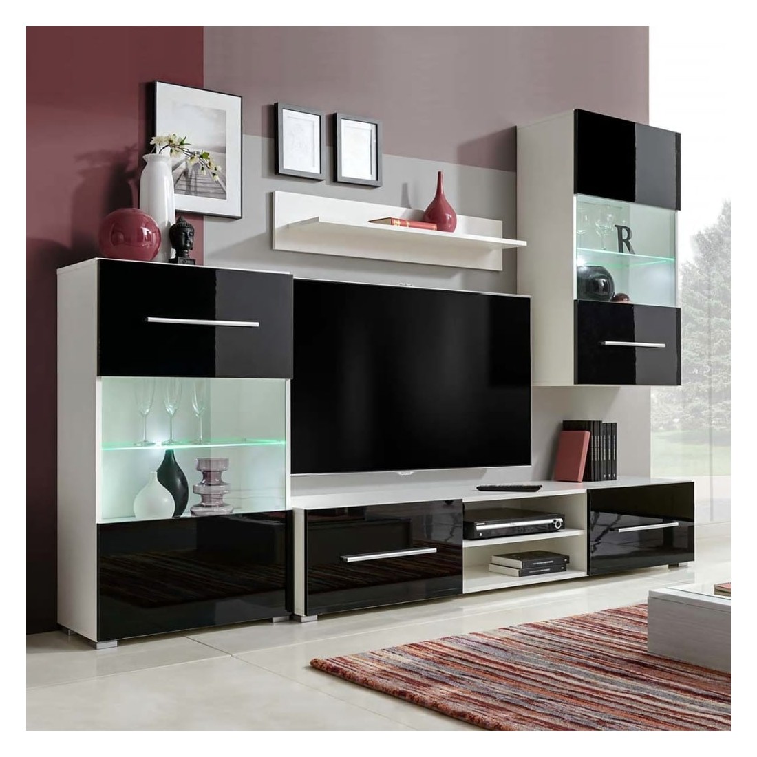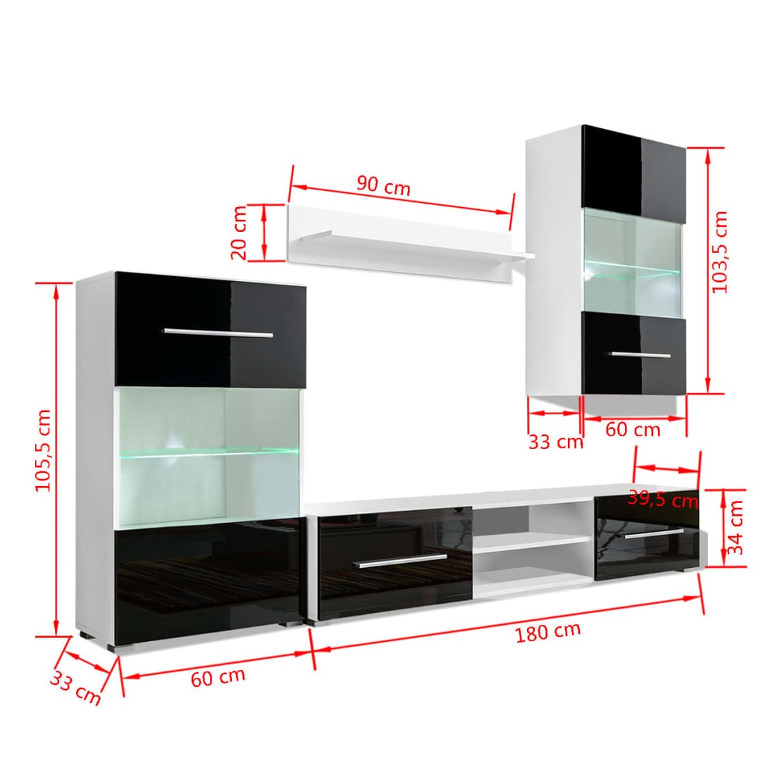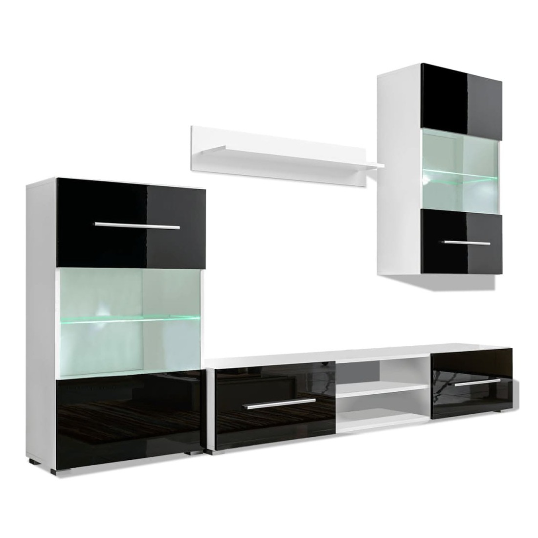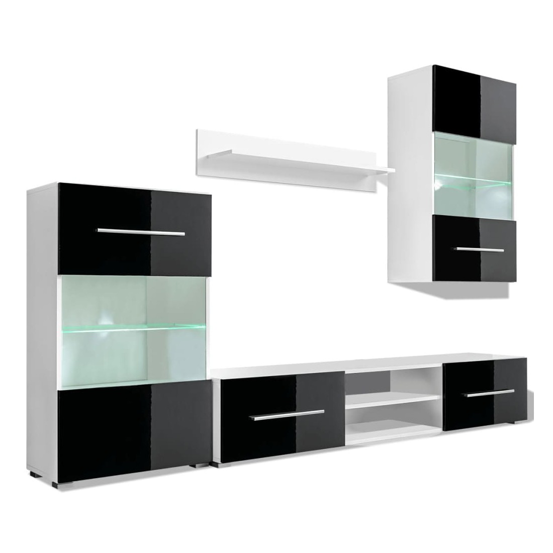 Meuble TV à vitrine murale avec lumière LED 4 pcs noir