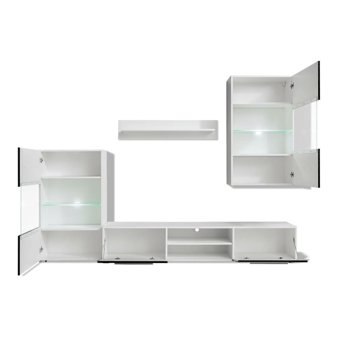 vidaXLCet ensemble complet de vitrine murale sera un excellent ajout à votre salon en optimisant votre espace sans compromettre le style. Ce kit est constitué d'une 1 armoire murale, 1 armoire classique, 1 meuble TV et 1 étagère murale, offre amplement d'espace pour stocker vos appareils multimédias, des livres, et toutes sortes de petits objets. Il sera également idéal pour l'affichage des objets décoratifs, cadres photo, ou même des plantes en pot. Le meuble TV avec ses portes déroulantes offre beaucoup d'espace pour garder vos livres, lecteur DVD, supports multimédias, etc, bien organisés. L'armoire murale et armoire classique sont équipées d'une porte partiellement vitrée et de trois étagères, dont une étagère en verre avec un éclairage LED économe en énergie. Notre kit de meubles à vitrine murale est fait de panneaux de particules de haute qualité dans une finition blanc mat, tandis que la finition en haute brillance sur les panneaux avant, ajoute encore de l'allure contemporaine et la convivialité de cet ensemble, qui conviendra à tous les décors. L'assemblage est vraiment facile. La livraison comprend également les accessoires de montage.