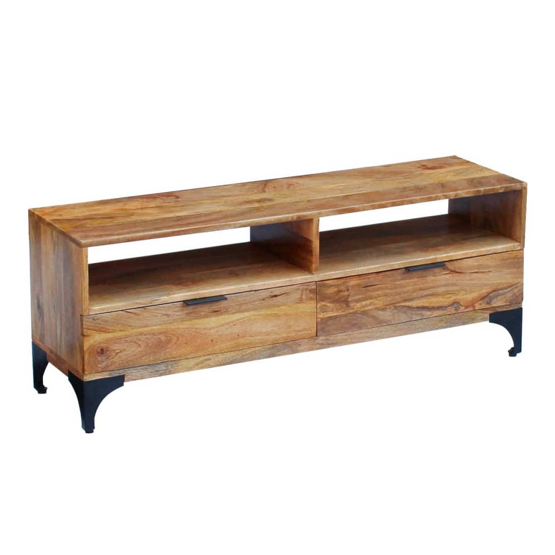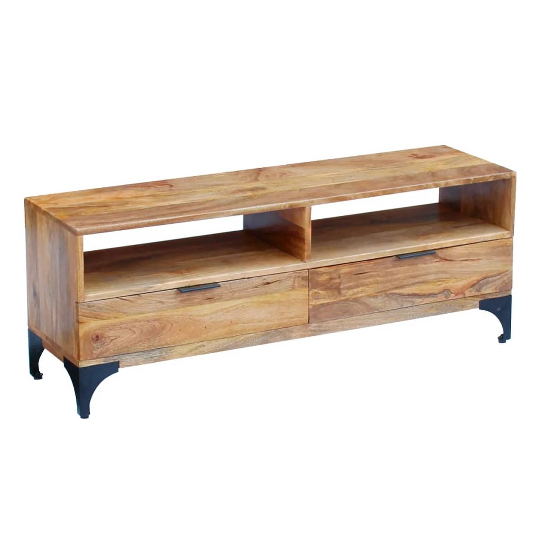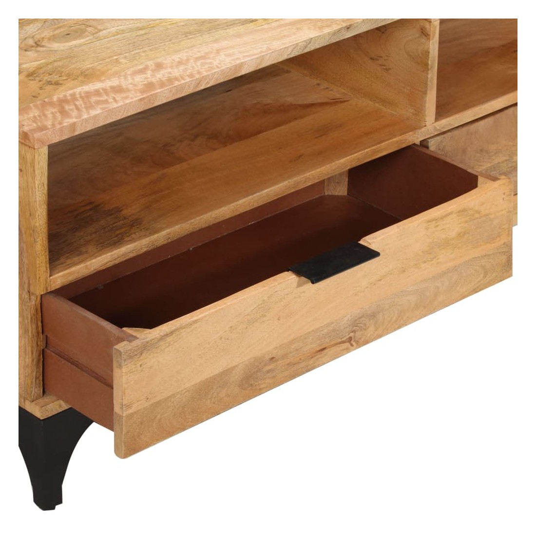 Ce meuble TV en bois sera un ajout unique à votre pièce. Sa construction en bois massif la rend stable et adaptée pour y poser des verres, des paniers de fruits, des objets décoratifs, etc. Avec deux compartiments et deux tiroirs en dessous, vous pouvez ranger soigneusement vos objets. Ce meuble TV peut également être utilisé comme armoire latérale, table d'appoint, table console, buffet, etc. Cette table est entièrement faite à la main. Chaque étape du processus est effectuée avec le plus grand soin, qu'il s'agisse du polissage, de la peinture ou du cirage.