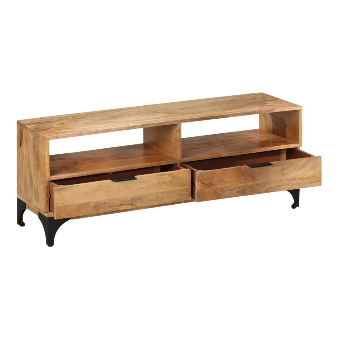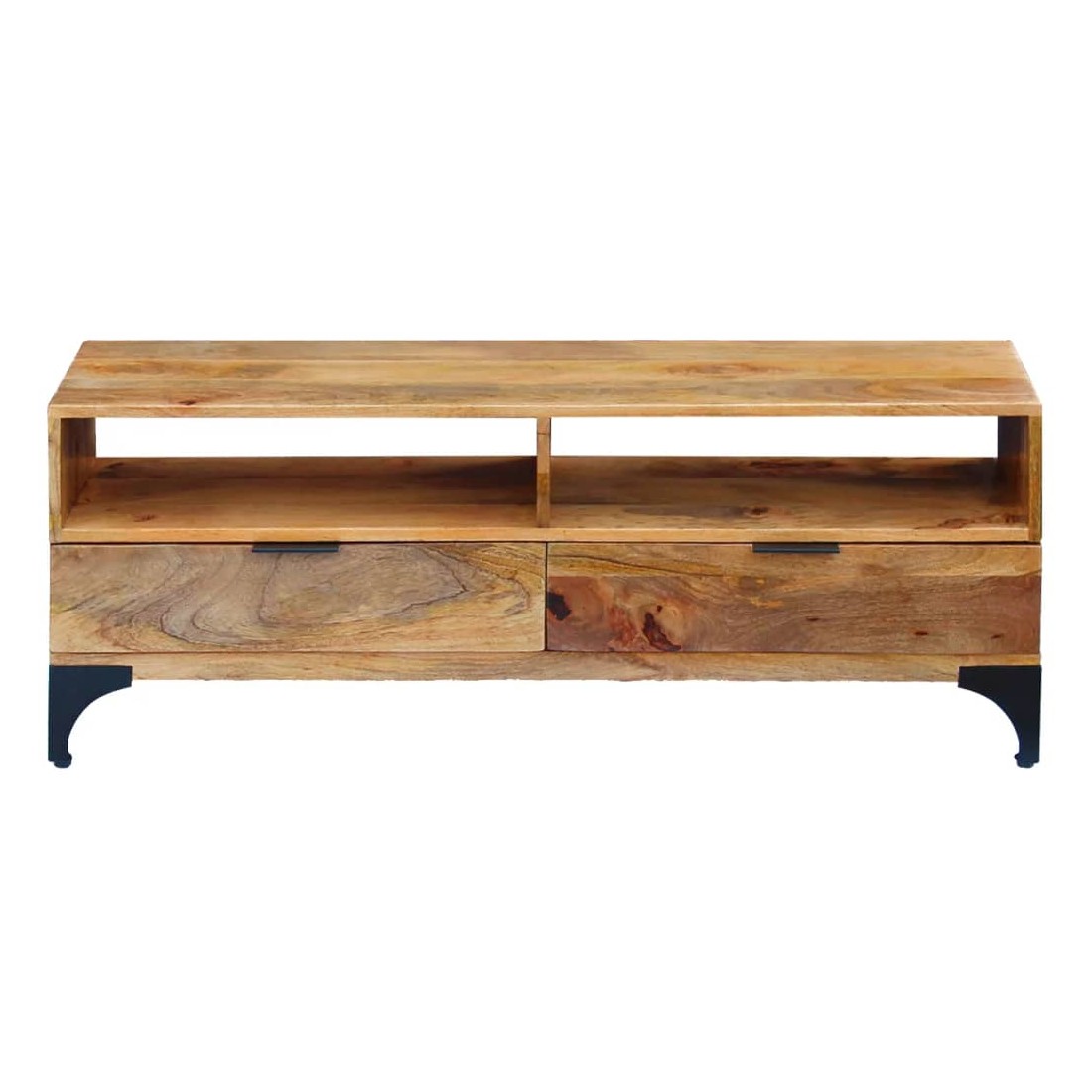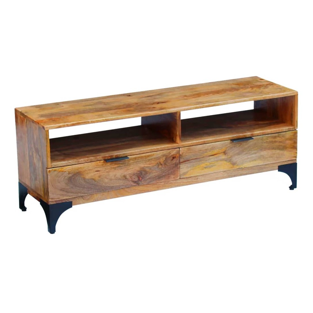 Ce meuble TV en bois sera un ajout unique à votre pièce. Sa construction en bois massif la rend stable et adaptée pour y poser des verres, des paniers de fruits, des objets décoratifs, etc. Avec deux compartiments et deux tiroirs en dessous, vous pouvez ranger soigneusement vos objets. Ce meuble TV peut également être utilisé comme armoire latérale, table d'appoint, table console, buffet, etc. Cette table est entièrement faite à la main. Chaque étape du processus est effectuée avec le plus grand soin, qu'il s'agisse du polissage, de la peinture ou du cirage.