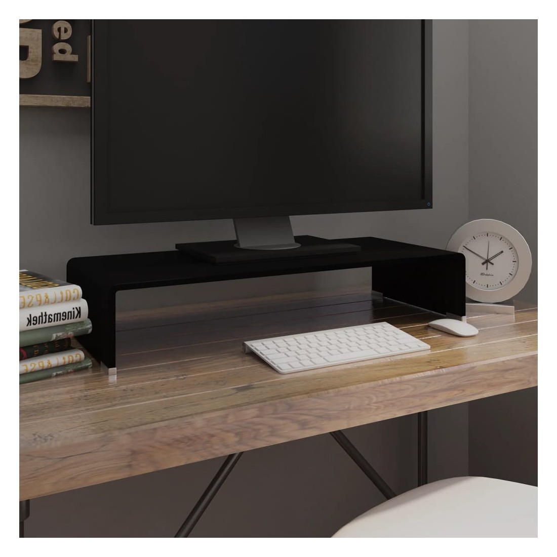 Ce support TV pratique est doté d'une construction en verre trempé. Le design élégant et profilé de ce meuble TV raffiné ajoutera une touche moderne à votre espace de vie. Cette étagère en verre peut être utilisée comme support TV ou support pour votre moniteur d'ordinateur, téléviseur, ordinateur portable et autres appareils multimédia. Avec une étagère en verre qui soulève le moniteur, vous aurez une meilleure vision de l'écran en étant confortablement assis, ce qui permet à réduire la tension et l'inconfort sur votre cou ou dos. L'espace en dessous peut accueillir votre lecteur de DVD, console de jeux, appareil de diffusion en continu, récepteurs et des supports média. Le cadre en verre est trempé pour ajouter de la résistance et de la sécurité. La surface lisse est facile à nettoye